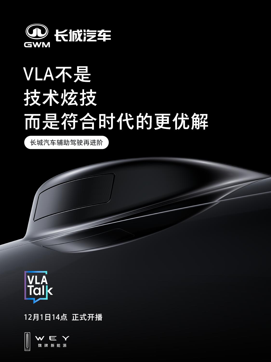 12月1日14:00,VLA Talk正式开播! 长城汽车CTO吴会肖对话影视飓风Tim, 带你揭秘长城汽车VLA大模型。
