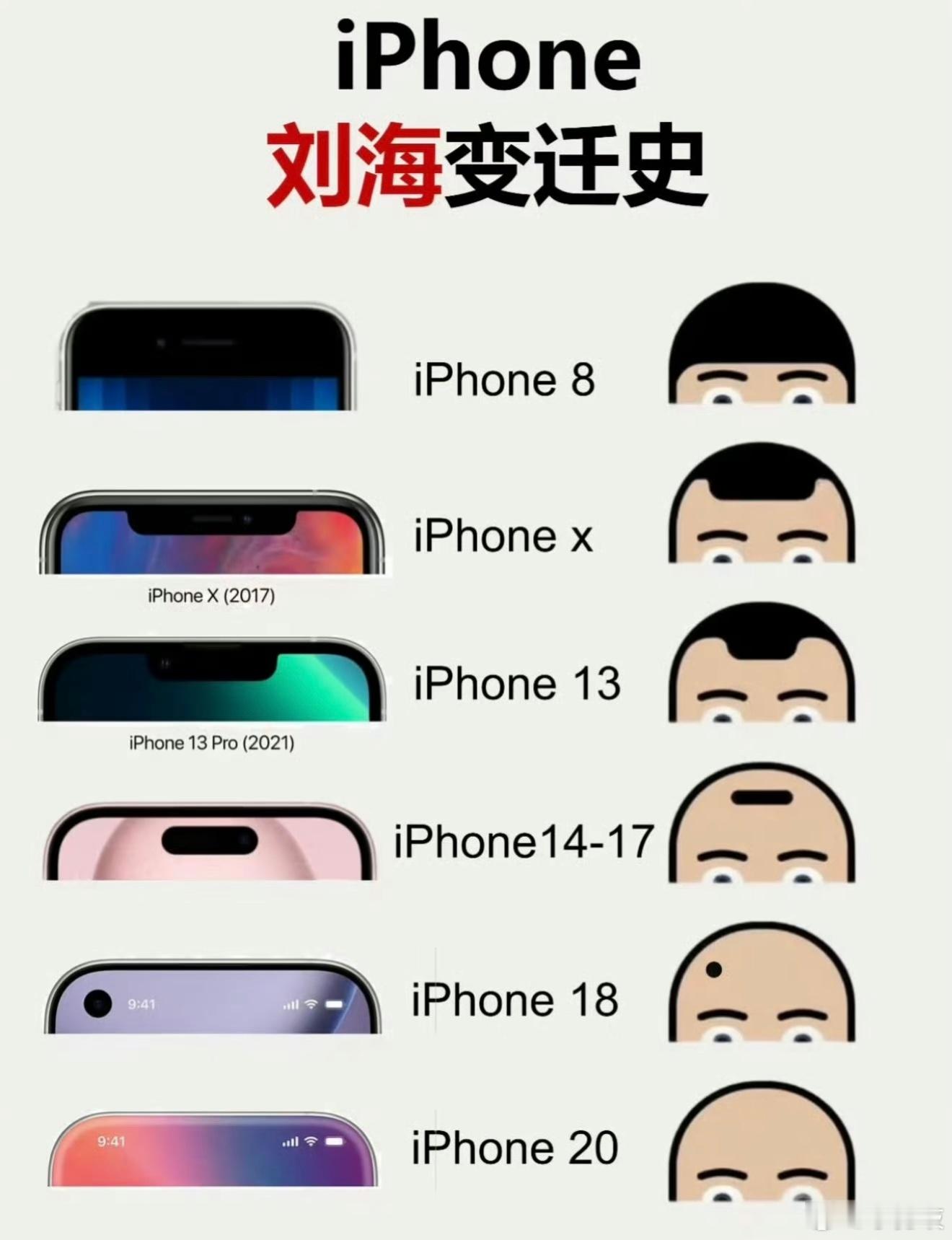 一张图来感受下iPhone刘海变迁史!随着年纪增长,发际线越来越往后直至没有,哈哈!