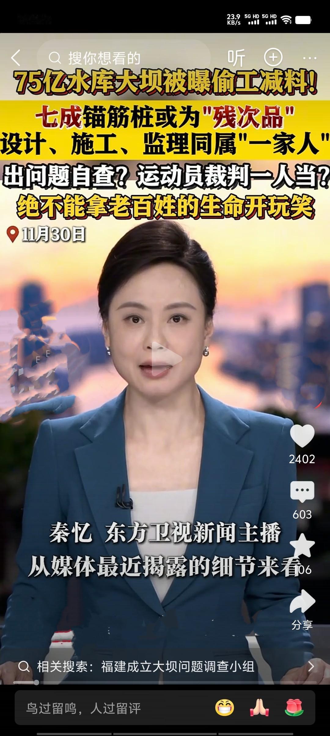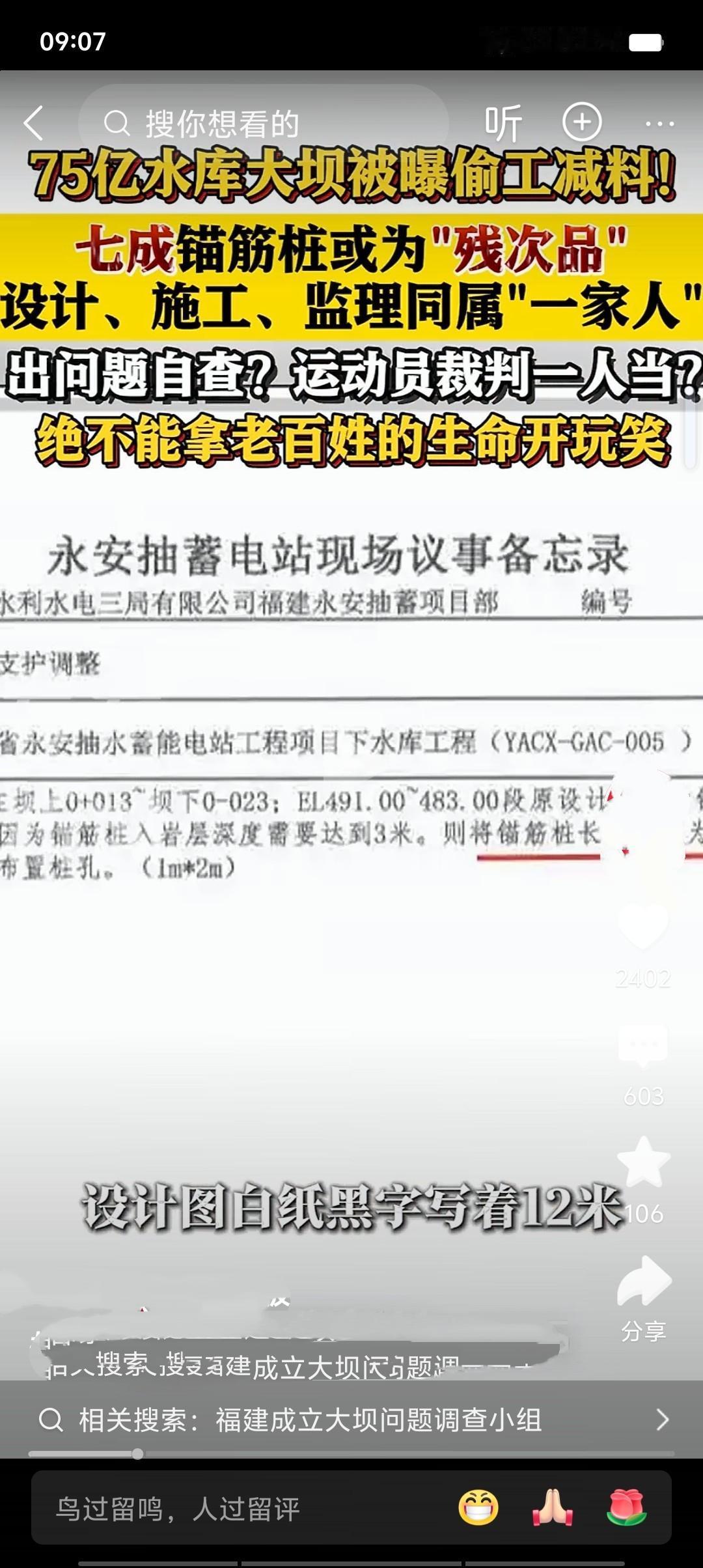 75亿水库大坝被曝偷工减料,锚筋桩长度缩水、灌注违规,监理人员还接受宴请与有偿陪侍,严重威胁工程安全。中国电建虽已成立调查组,但此事件暴露的监管失守与利益输送问题,亟待彻查追责,以重建公众对国企基建的信任。电建公司