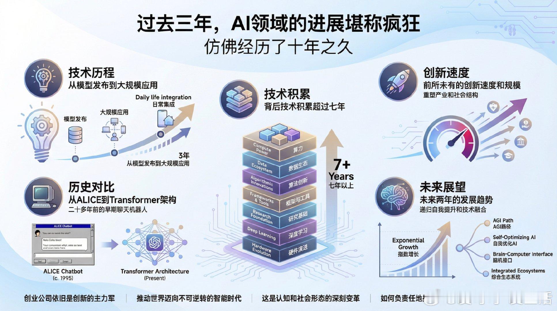 过去三年,AI领域的进展堪称疯狂,仿佛经历了十年之久。从最初的模型发布到如今大规模应用,LLM聊天机器人已深度融入日常生活,难以想象没有AI的世界。有人说,这只用了三年时间实现,而背后技术积累其实超过七年。这场“技术竞赛”也引发热议:OpenAI的突破是否迫使其他公司提前开放核心技术,还是创新必然之路?无论如何,AI创新的速度和规模前所未有,正在重塑产业和社会结构。回顾历史,像ALICE那样的早期聊天机器人早在二十多年前就出现了,但如今的Transformer架构让AI能力发生质的飞跃。有人感叹,看AI能用C++做矩阵运算时的震撼,也有人提醒我们警惕数据来源和隐私问题。未来两年,AI的发展会更快,还是即将触及瓶颈?无论答案如何,递归自我提升和技术融合将持续推动变革。创业公司依旧是创新的主力军,推动世界迈向不可逆转的智能时代。这不仅是技术的进步,更是认知和社会形态的深刻变革。我们正站在一个巨变的起点,每一次突破都值得我们深思:如何负责任地拥抱AI,让它成为真正服务人类的力量。原文:x.com/_philschmid/status/1995143109618159865