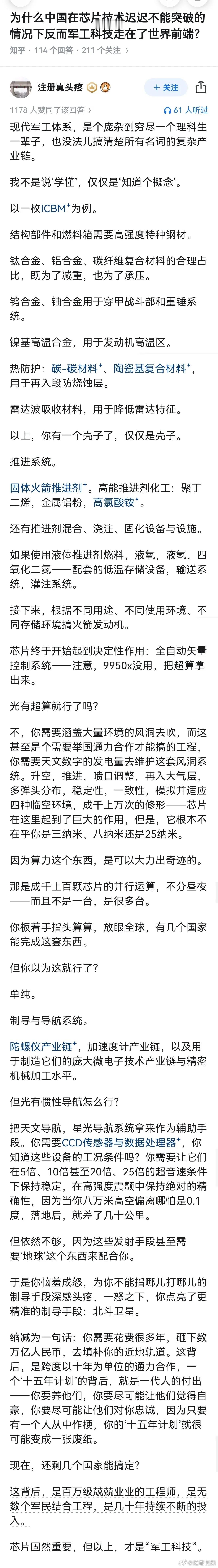 为什么中国在芯片技术迟迟不能突破的情况下,反而军工科技走在了世界前端?