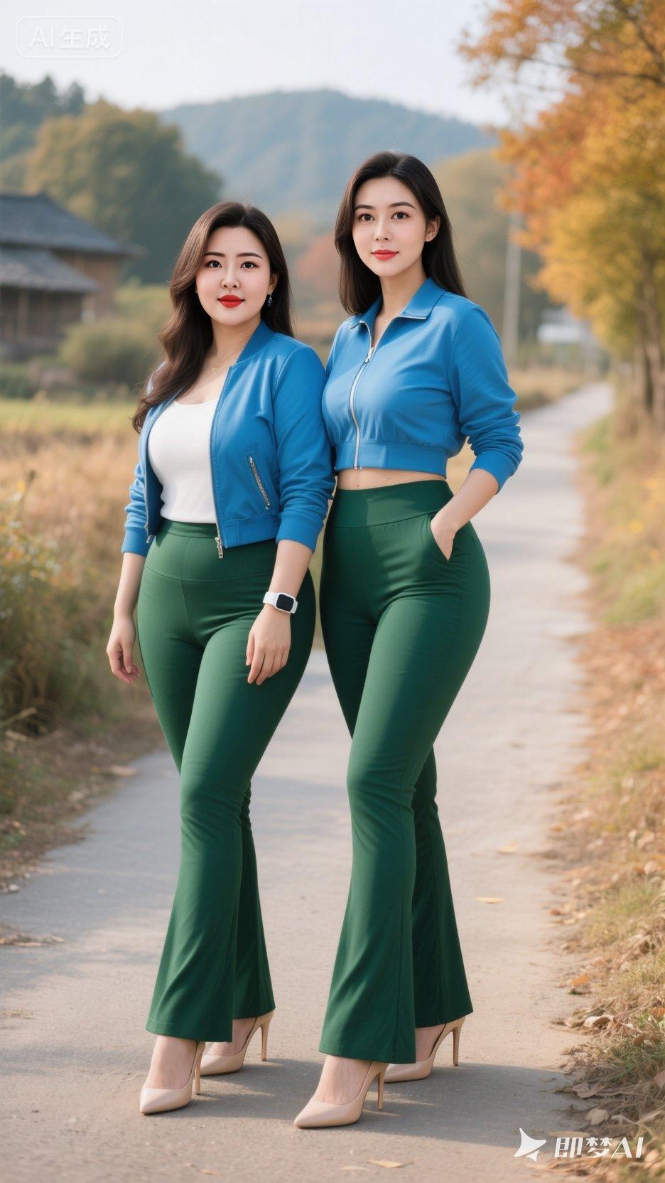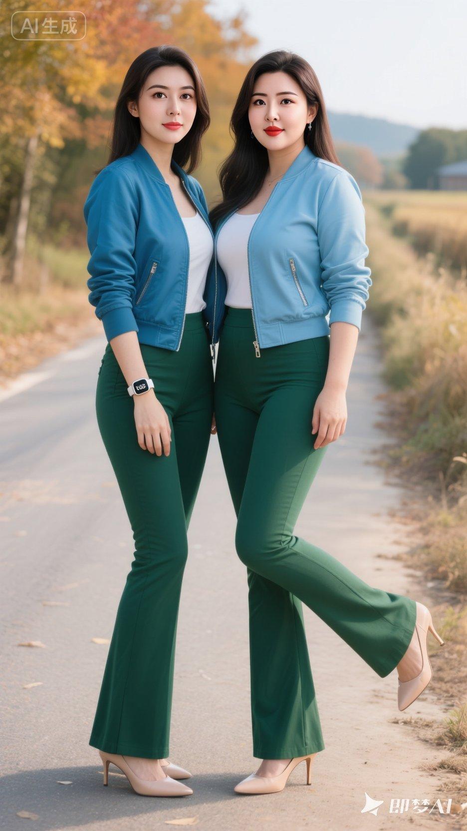 冬日生活打卡季 姐妹穿搭指南👭:蓝白撞色+绿裤,秋季时尚出街!