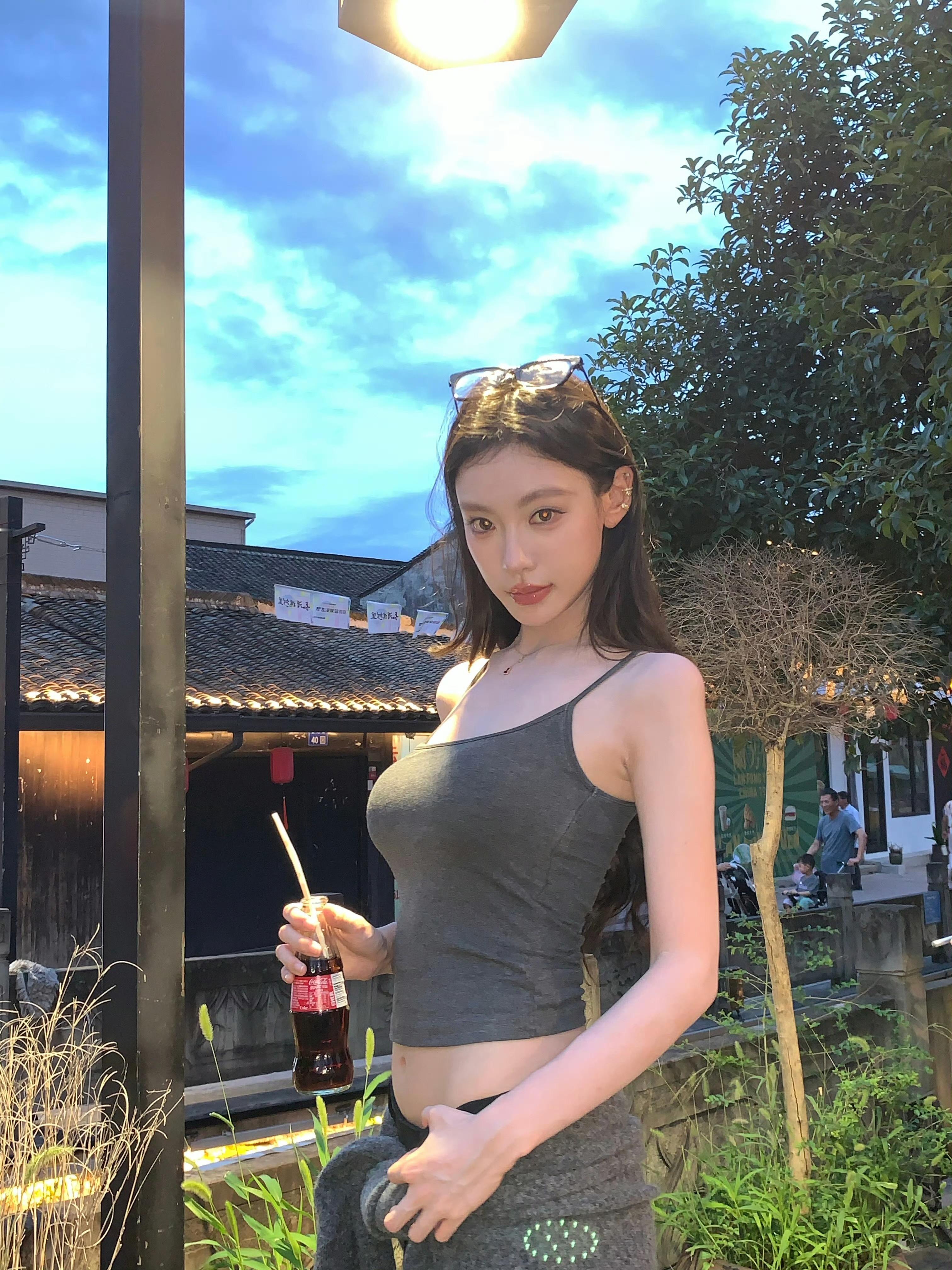 吴艳妮在成都穿着短裤大腿看起来很粗壮,表情自信又张扬