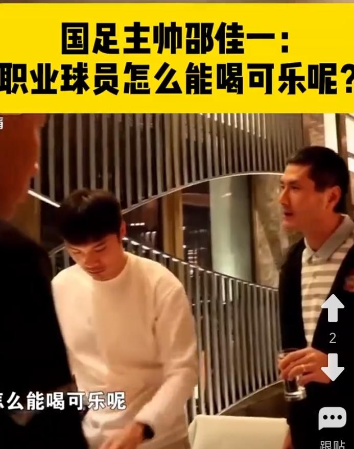 不知道可乐对足球球员会有什么影响,总之,邵佳一是非常反对球员喝可乐的。 在一次饭餐时,邵佳一看见队员喝可乐,就问,怎么能喝可乐呢? 有人说,国足球员大把人酗酒的,还搞出一个球员喝酒排名榜来。 不错,国足球员有人喝酒,所以国足排名越来越差,现在几乎是到了谁也打不过的地步。 有人会说,球员吃点什么,喝点什么,似乎不需要太理会。 这就错了。葡萄牙球星C罗只喝水不喝可乐,可见可乐对球员应该还是有影响的。 球员不能自律,教练就该管。