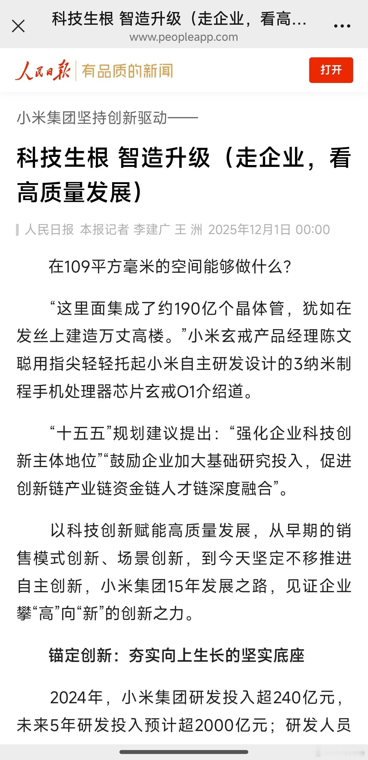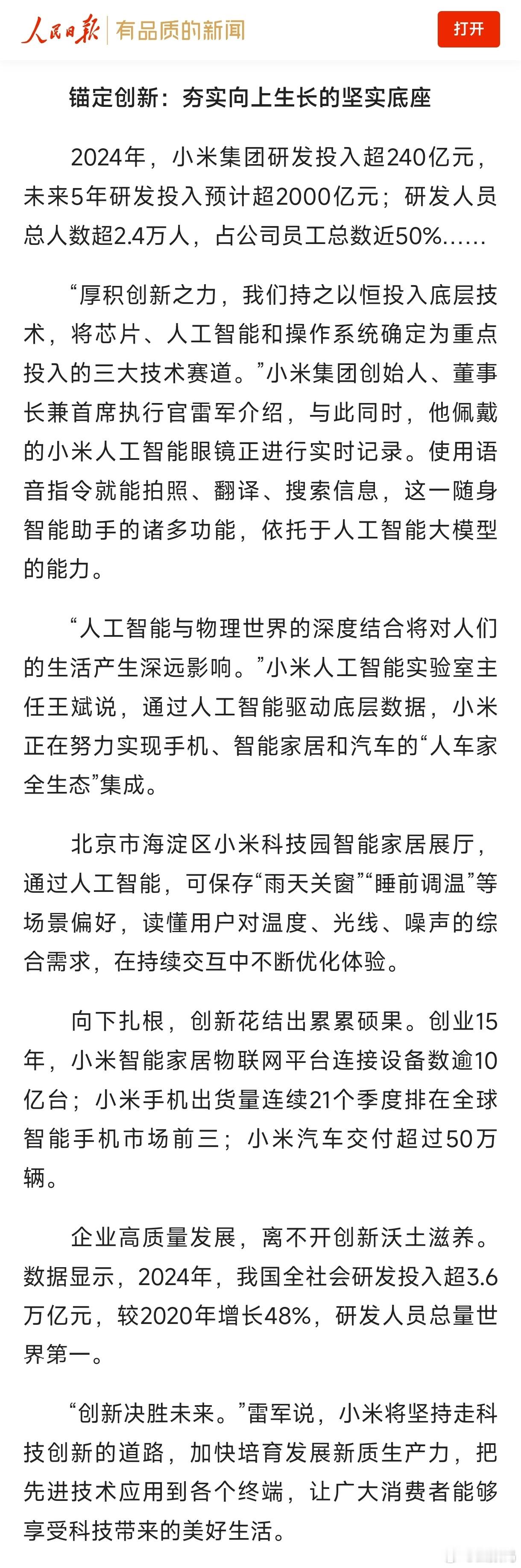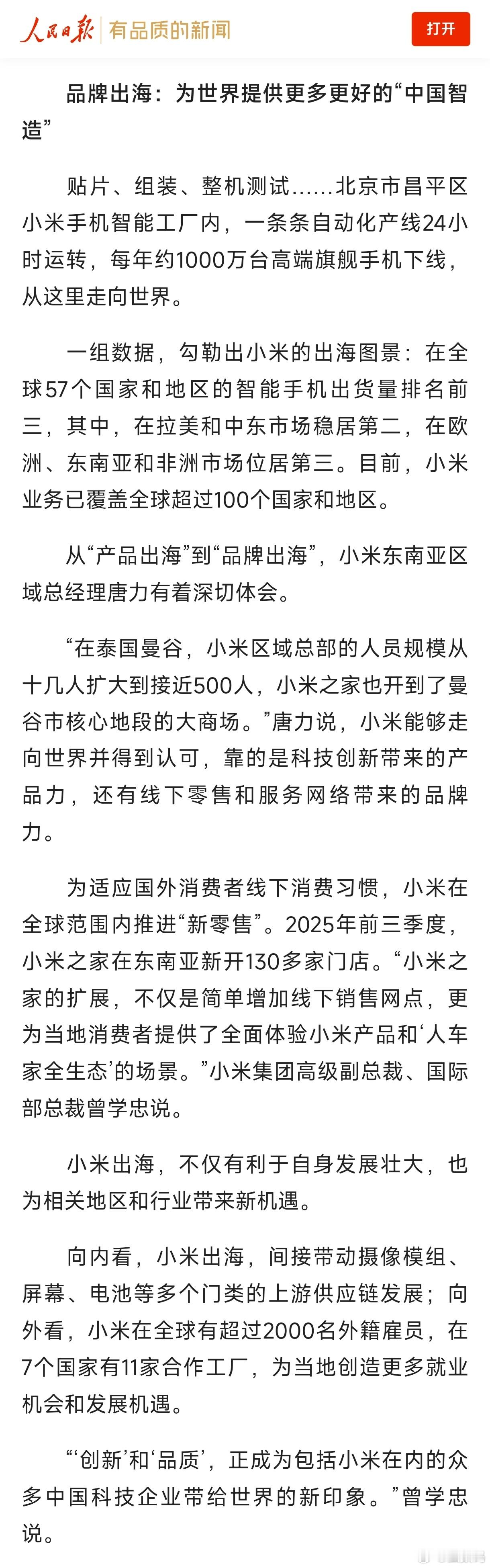 人民日报头版又写小米了从创新到品牌出海,又好好的“吹”了一波。
