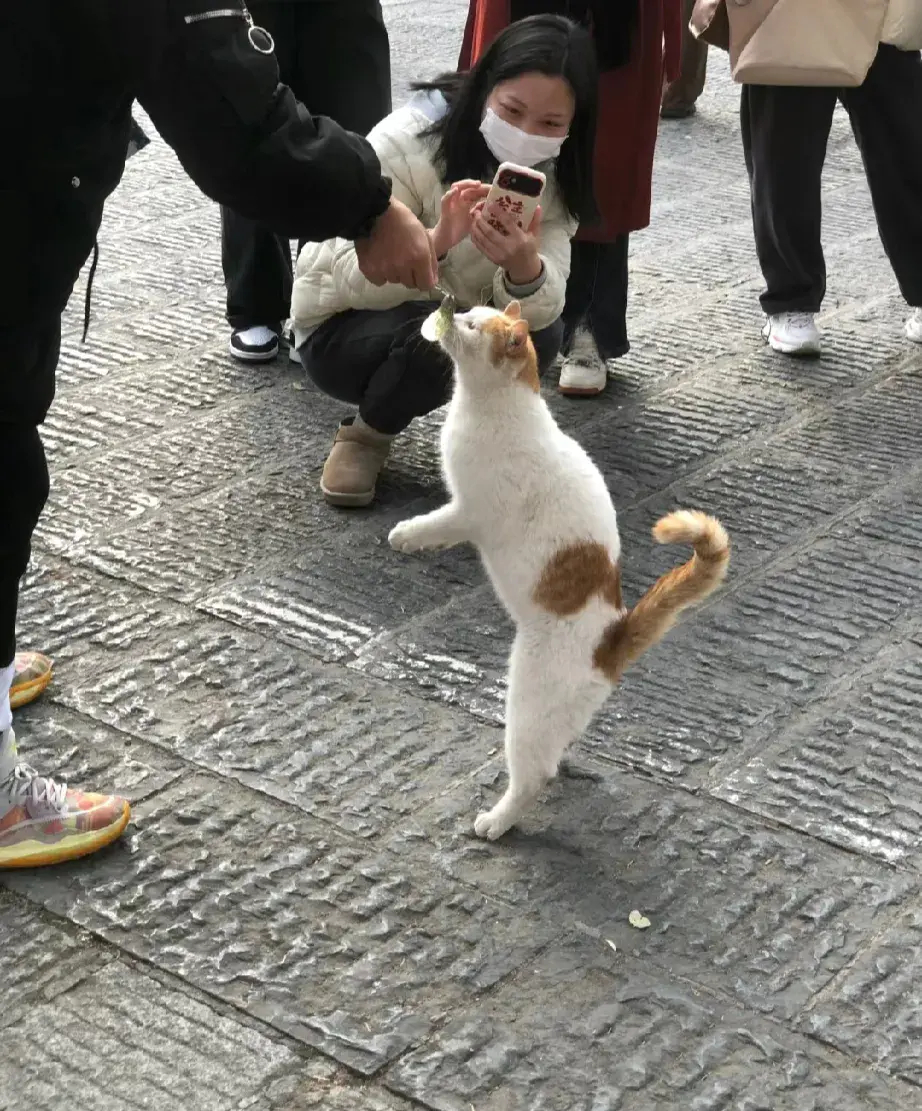 流浪猫妈妈嘴里含着小猫咪,后面还跟着一只小的,娘仨孤独的走在黑夜里。也许它是在找