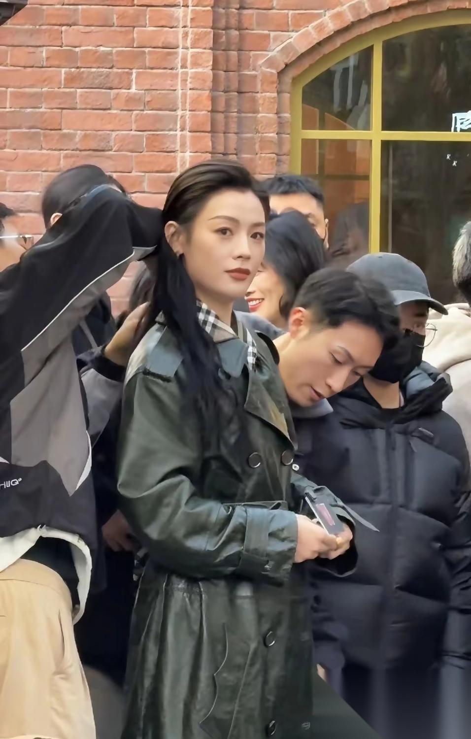 陈丽君王府井现身!绿皮风衣+湿发造型,随性美翻全场