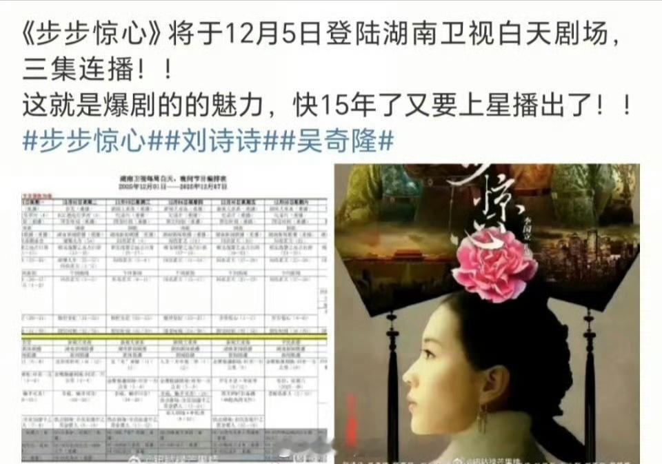 刘诗诗《步步惊心》近日刚和游戏联动。现在又即将上星登陆湖南卫视重播,十几年的剧再度上星,这就是全球大爆剧的魅力,长尾效应的含金量