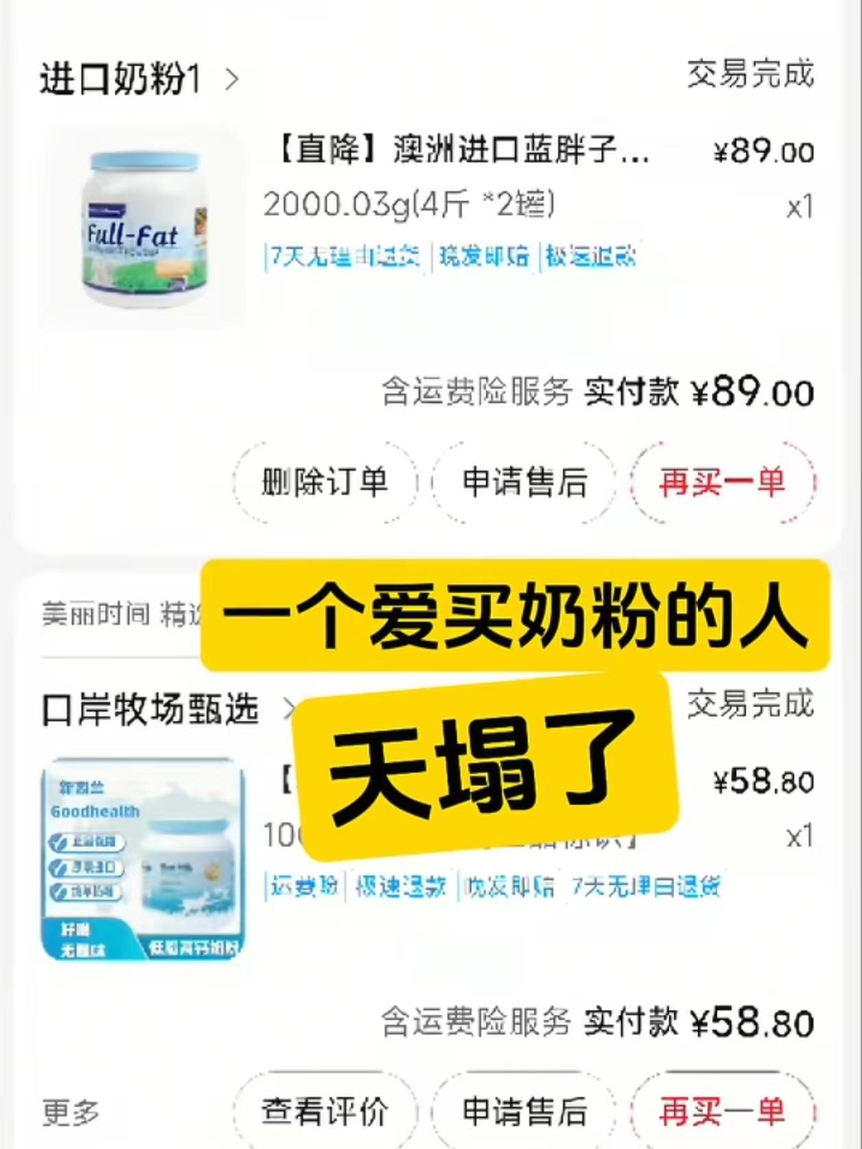 “一觉醒来天塌了”!江苏的一位网友发现,自己之前在网上购买过的洋奶粉店铺,在这两天都暂停营业了。 再结合最近报道的假奶粉事件,该名网友这才意识到了问题的严重性,自己买到了假奶粉,而自己已经喝了好长时间了。 据了解,这种“假奶粉”是使用奶精加淀粉制成的,闻起来比真奶粉更香、喝起来口感更好,价格也比其他奶粉便宜的多。该网友购买的一大罐这种“假奶粉”,优惠完下来才花费了不到60块钱。但是它的营养价值不高,奶精以植脂末为主要原料,含有植物油、糖分以及食品添加剂,过量食用的话,对人的健康是有很大风险的。 因此大家在选择奶粉的时候,一定要去正规的店铺购买,切勿贪小便宜而吃了大亏。 最可恶的还是那些售卖这种“假奶粉”的人,为了赚取那一点利润,他们竟然在孩子们食用的奶粉上面动手脚,他们自己也有孩子啊!挣着这些昧良心的钱,他们的心里就不会痛吗?最终这些制作、销售假奶粉的相关人员都受到了法律的严惩,这也是他们应得的惩罚。 最后希望大家在选择奶粉的时候,都能够擦亮双眼,避免买到这种“假奶粉”。