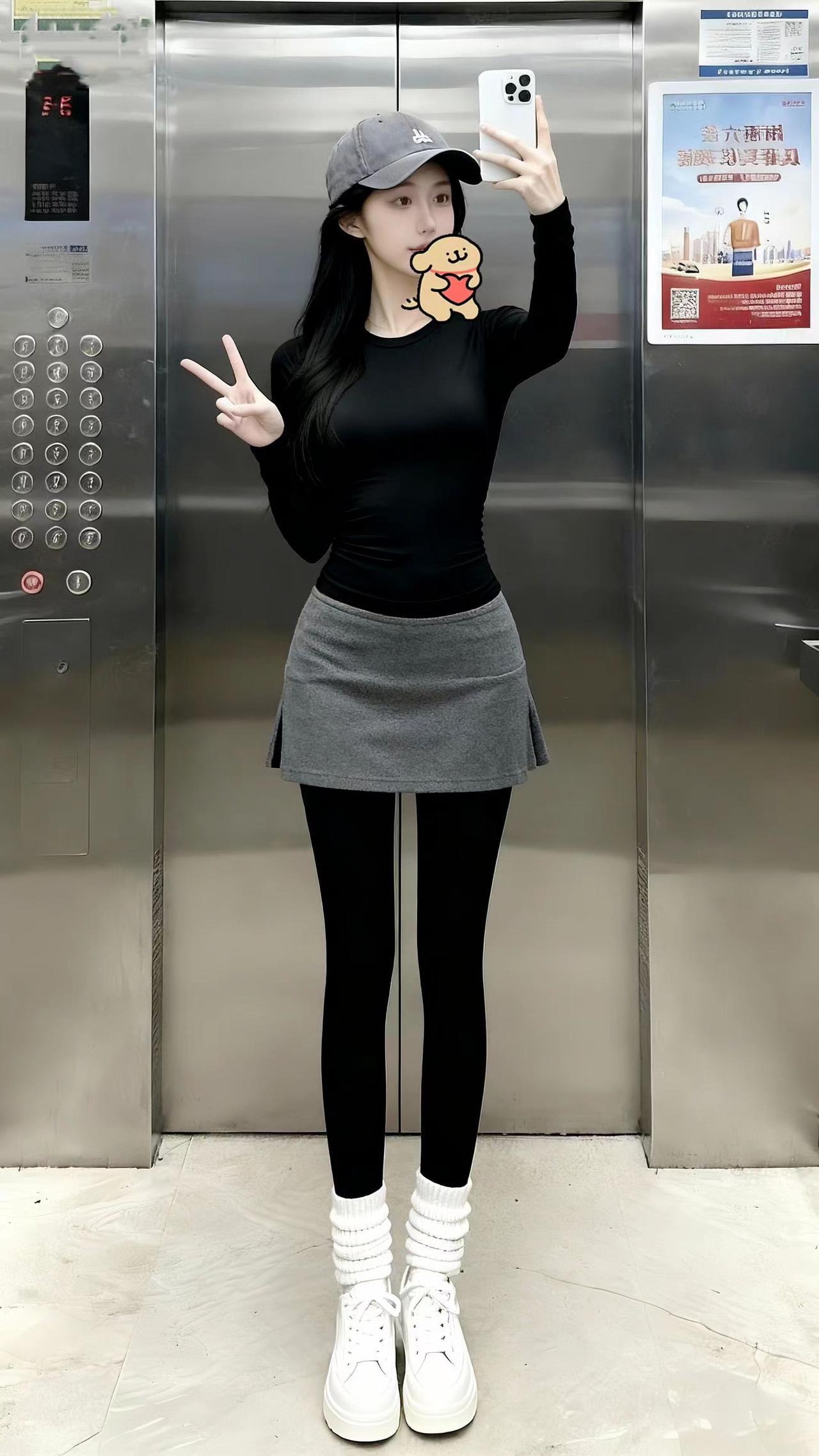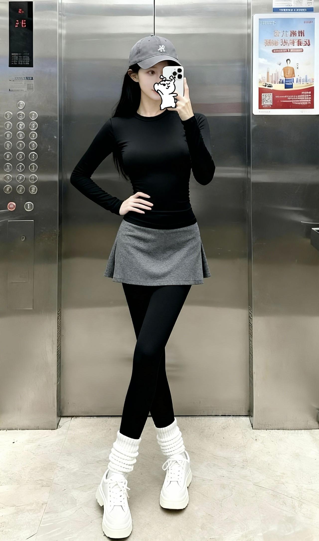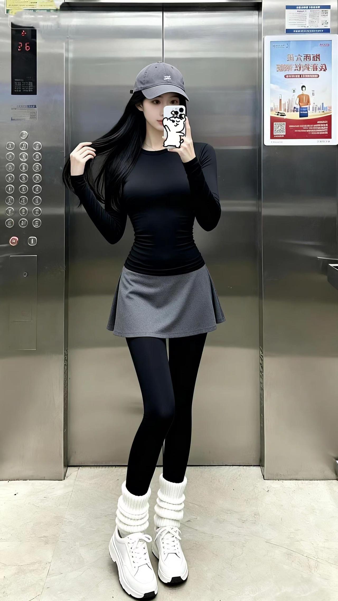黑灰撞色+堆堆袜,迷糊不?把紧身衣的辣和堆堆袜的甜搭出了松弛感,舒服又好看的运动风你觉得怎么样?电梯拍照 日常分享 黑灰搭配 运动风