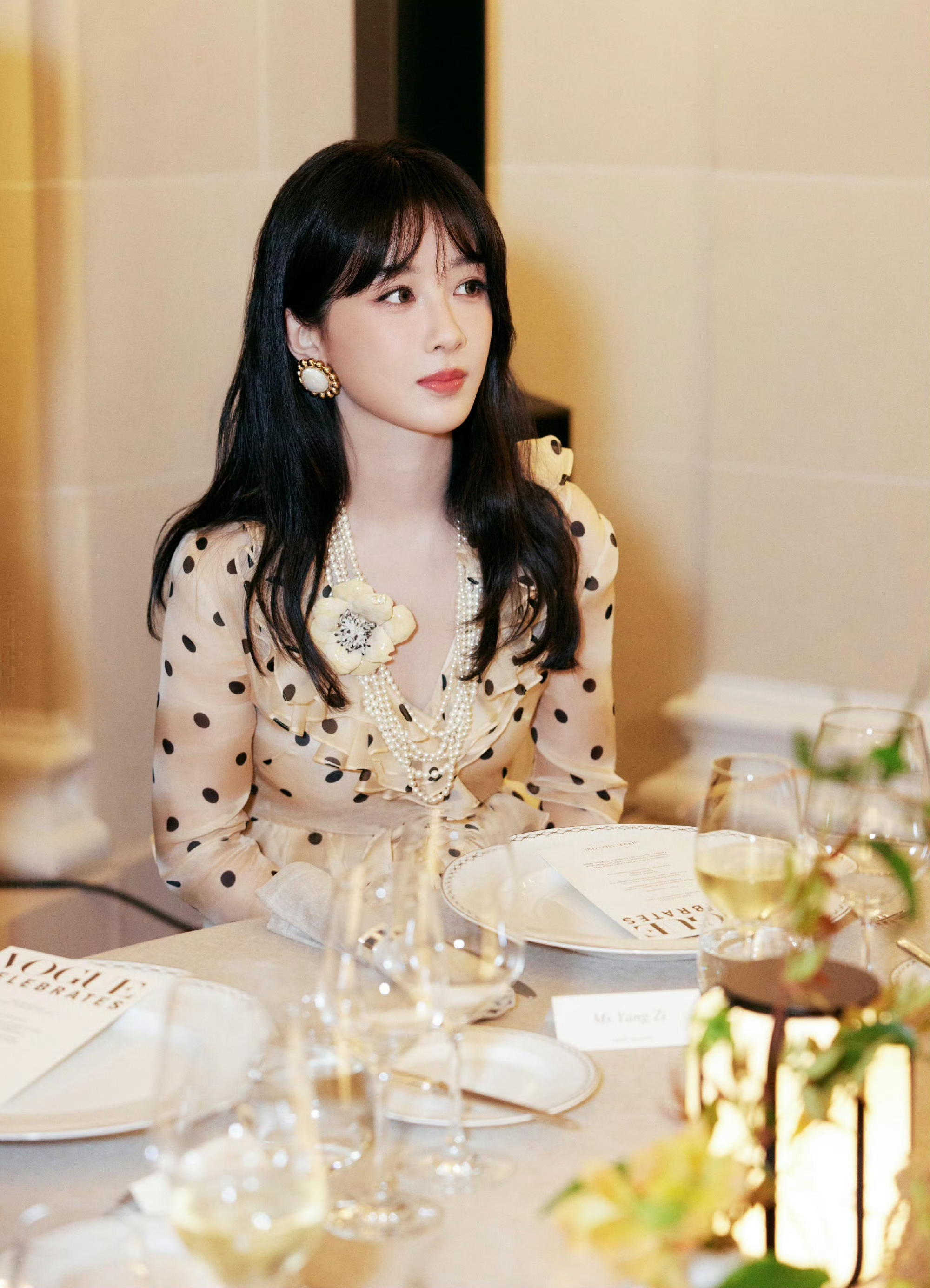 杨紫的波点白裙造型简直绝了,优雅与活泼完美融合。在某晚宴上,她这条波点裙获全网好