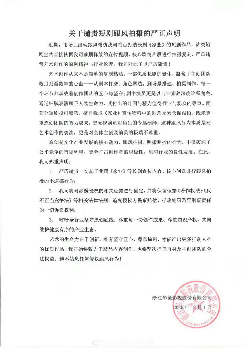 短剧抄袭杨紫《家业》华策出来发声明了