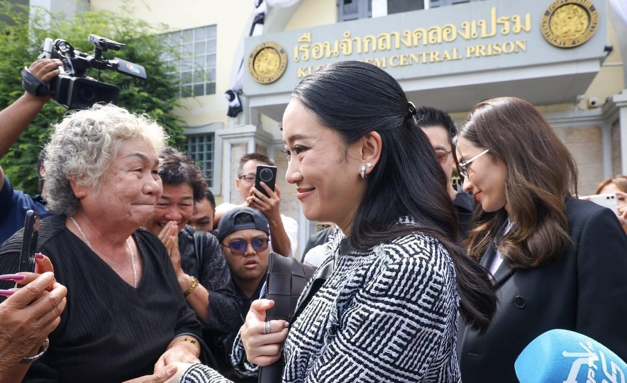 泰国前总理佩通坦与姐姐萍通塔以及姐夫纳塔蓬一同前往曼谷空巴蓬中央监狱探视前总理他信,此前泰国总检察长已指示检方对他信触犯《刑法112条》(冒犯王室)案件提起上诉!