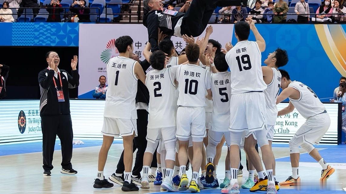 十五运会U22男篮决赛 11月20日,香港体育馆热血沸腾!十五运会U22男篮决赛巅峰对决,广东队火力全开,力克山东队勇夺冠军!夺冠时刻,队员们兴奋地将教练高高抛起,这欢乐又温馨的一幕,定格了属于他们的荣耀与团结!太燃啦!跟着全运逛湾区粤分享粤精彩
