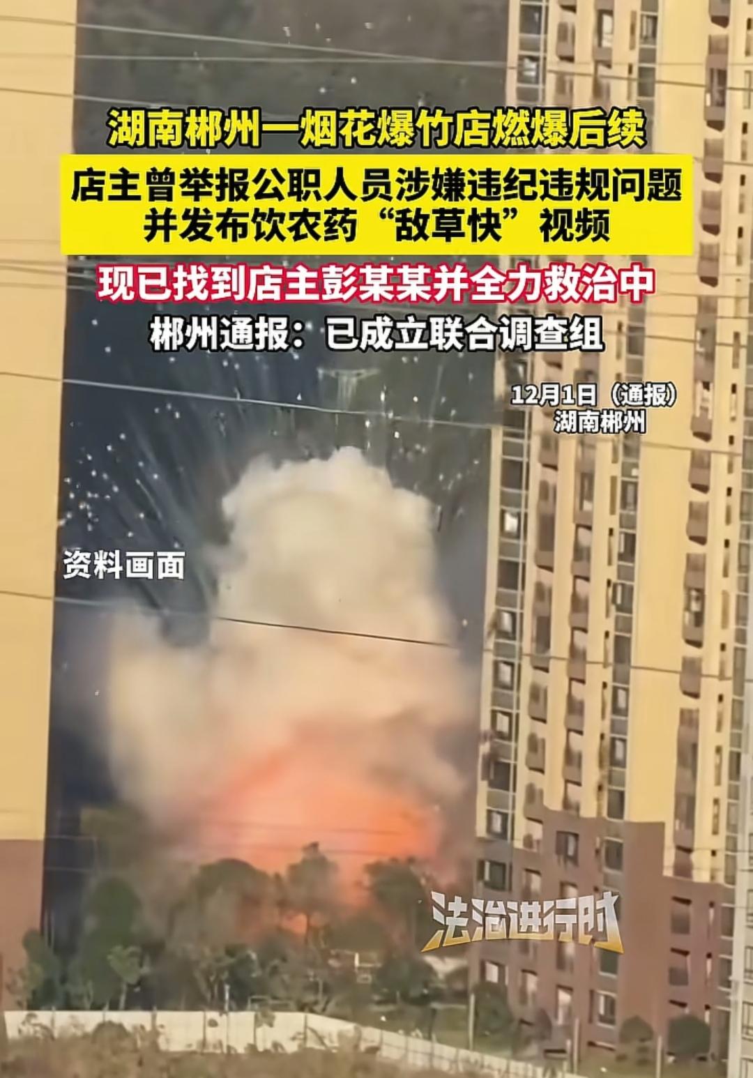 是什么原因让郴州老板赌命举报?这老板叫彭某某,是北湖区的烟花爆竹店主,举报了公职人员违纪,然后用喝剧毒农药的方式,把自己的举报“炸”上了热搜。直到这时候,郴州才成立了纪委、公安、应急管理局组成的联合调查组,说要全面核查,绝不姑息。这事最痛心的不是举报了谁,是他为啥非要赌命! 普通人跟公职人员掰扯,本来就有怕报复的顾虑,老板敢实名举报说明他是真咽不下这口气,是举报信递上去没下文?还是有人明里暗里给他使绊子?咱现在不知道,但他选了喝农药上热搜这条路,等于在说,我正常喊没人听,只能把命挂在热搜上,换你们看我一眼。 现在很多基层矛盾,都得靠把自己逼到绝路才能被看见,讨薪的爬塔吊,维权的堵路,到今天这老板喝农药。不是大家想当极端者,是常规渠道的响应速度、重视程度,没接住他们的诉求。 我们紧盯官方通报,看是什么结果。 郴州烟花事故