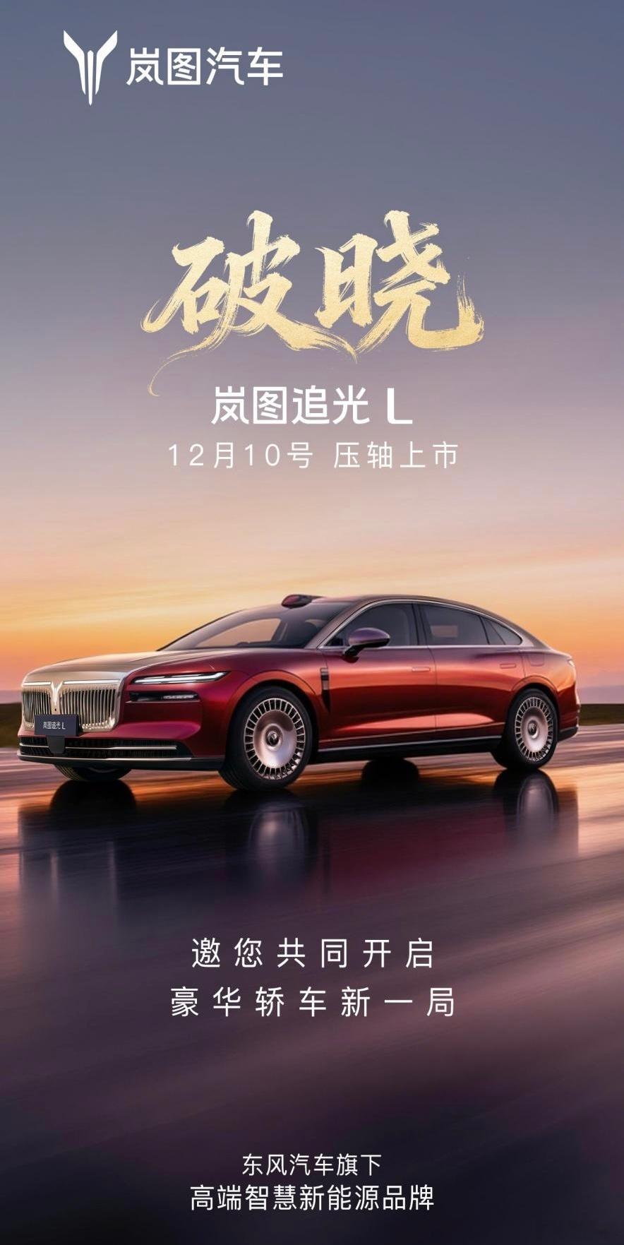 全域800V平台+5C超充,岚图追光L定档12月10日上市!12月10日岚图追光