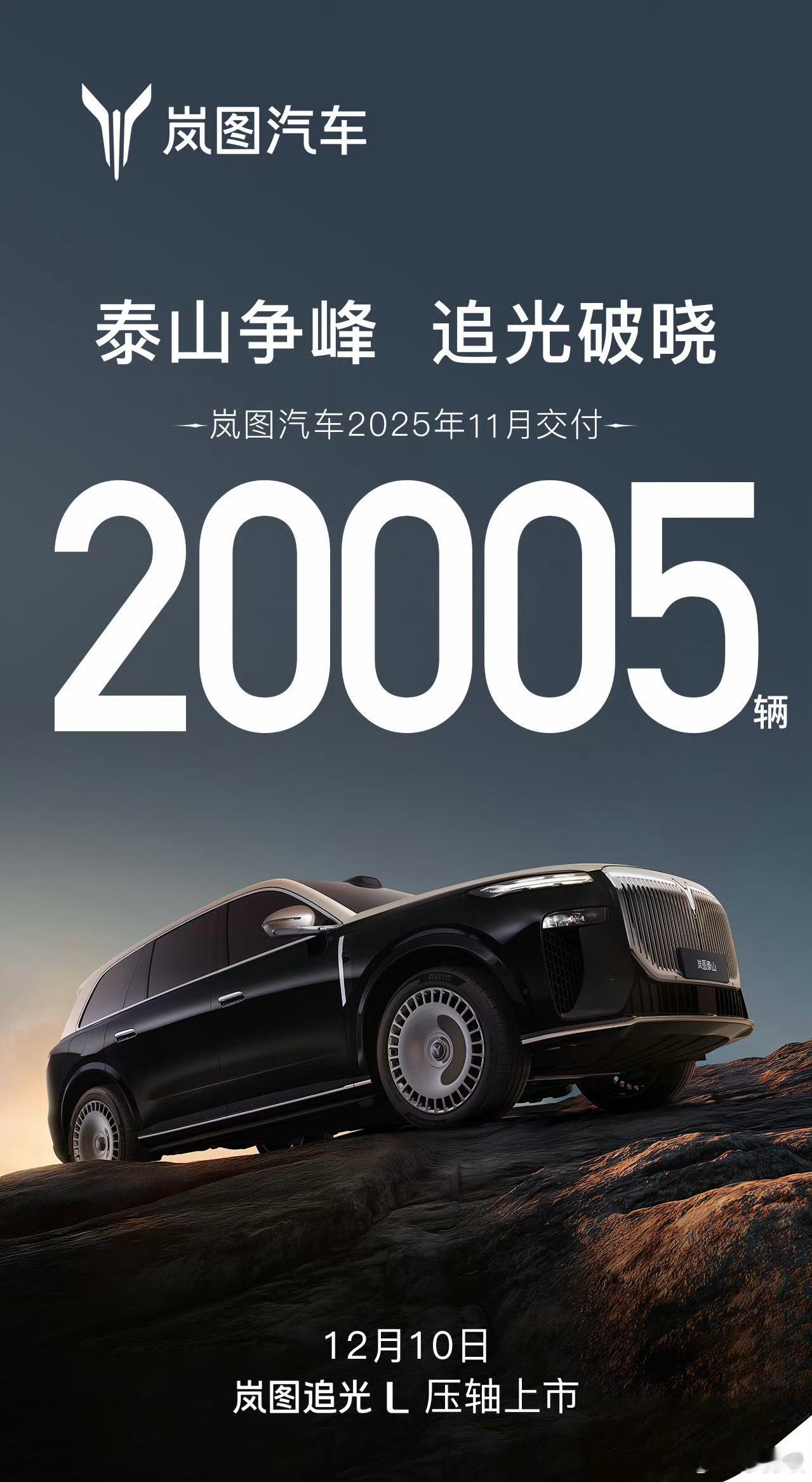全域800V平台+5C超充,岚图追光L定档12月10日上市!12月10日岚图追光L压轴上市12月1日岚图汽车发布的11月交付数据显示,单月交付20005辆,同比增长84%,再创历史新高,实现“十连涨”。同时岚图汽车宣布,12月10日新时代旗舰轿车岚图追光L正式上市。岚图汽车11月交付20005辆 新车搭载最新一代华为乾崑智驾ADS 4与鸿蒙座舱5,支持车位到车位领航辅助2.0及全维防碰撞系统CAS 4.0,重塑智能出行体验。全域800V岚海智混技术,配备5C超级快充与63kWh大电池,仅需12分钟即可实现电量从20%至80%的快速补能,彻底化解用户续航焦虑。随着岚图追光L的加入,岚图汽车已构建起覆盖SUV、MPV、轿车三大品类的完整产品矩阵,形成由岚图泰山、岚图梦想家、岚图追光L组成的三旗舰阵容。在持续强化产品与品牌力的基础上,岚图正蓄势迈向全新发展阶段,未来表现更加值得期待。华系首款800V插混旗舰轿车
