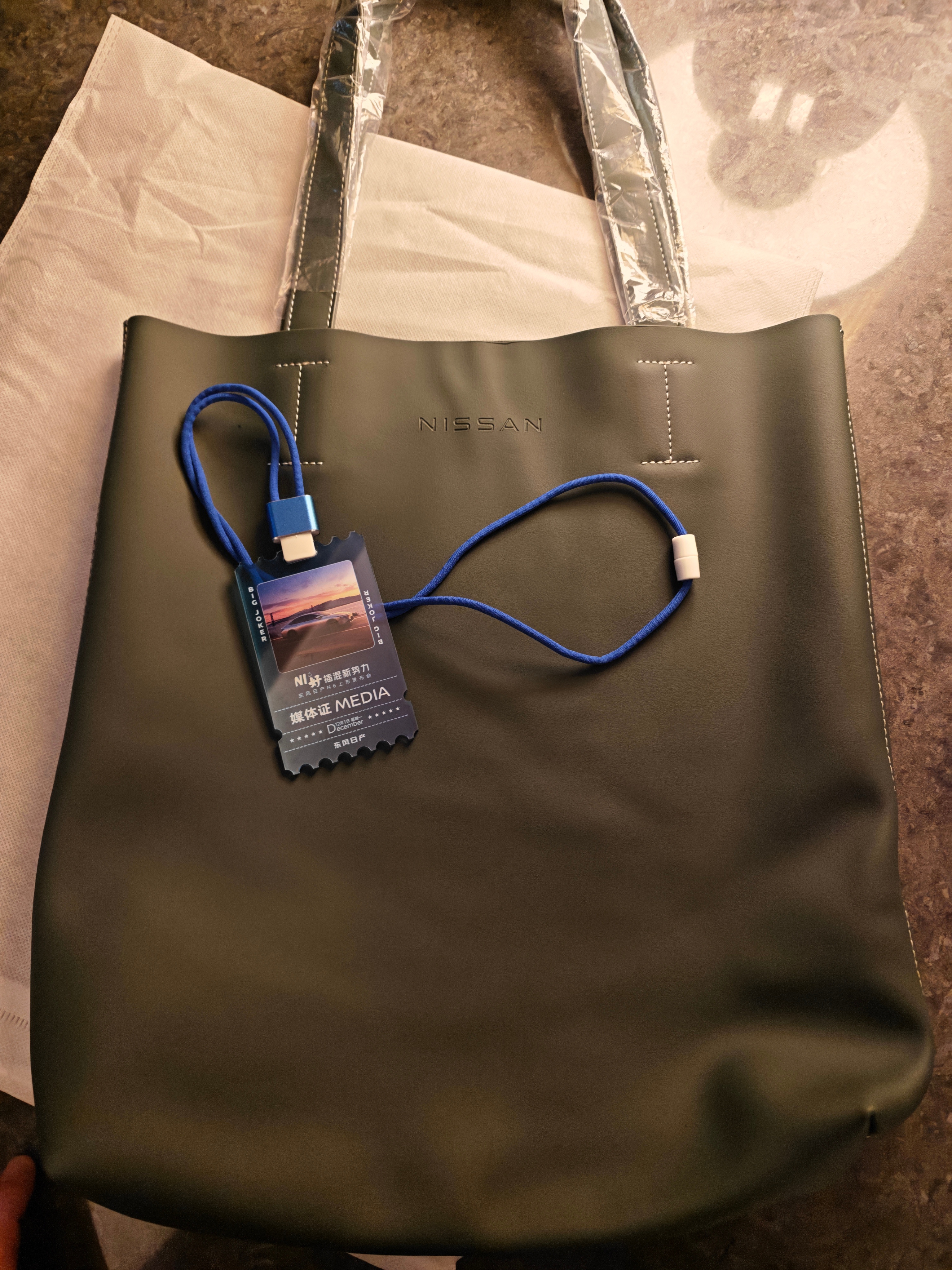 东风日产N6 发布会的伴手礼居然是一个Nappa真皮+麂皮的包,质感无敌啊
