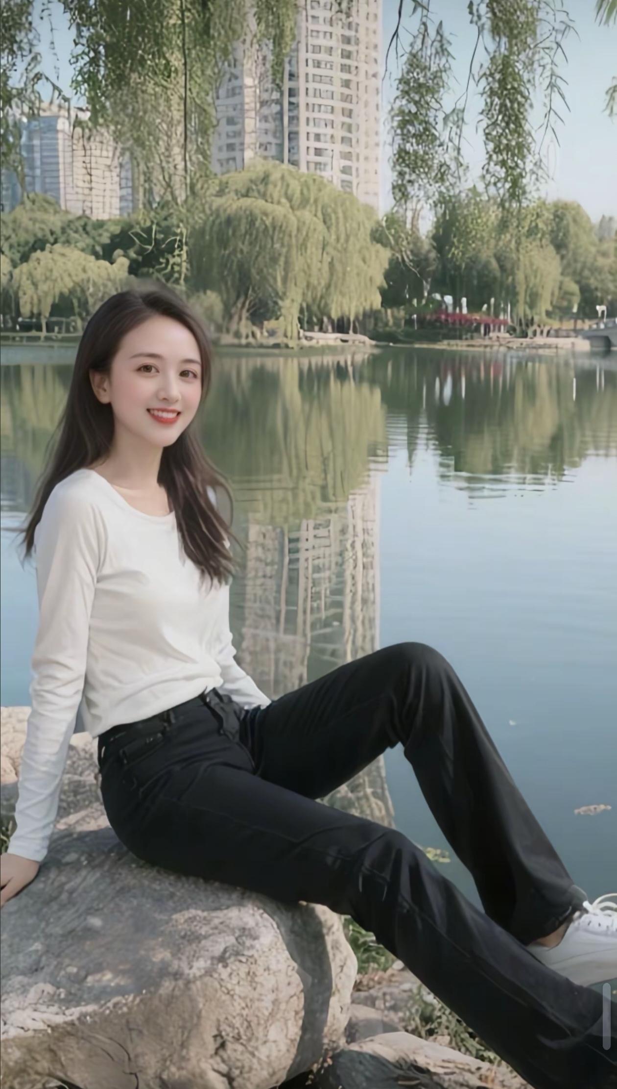 在湖边静坐,享受宁静的午后时光。🍃💙