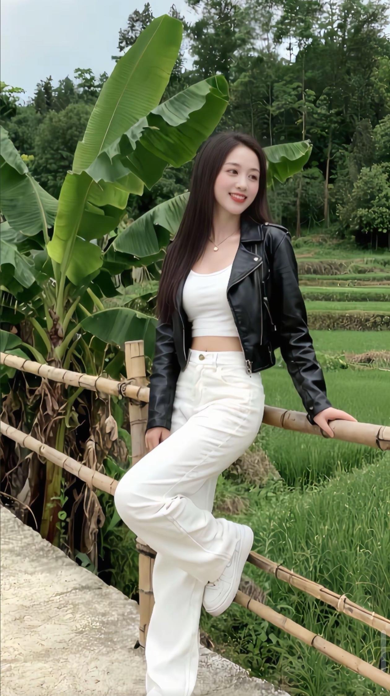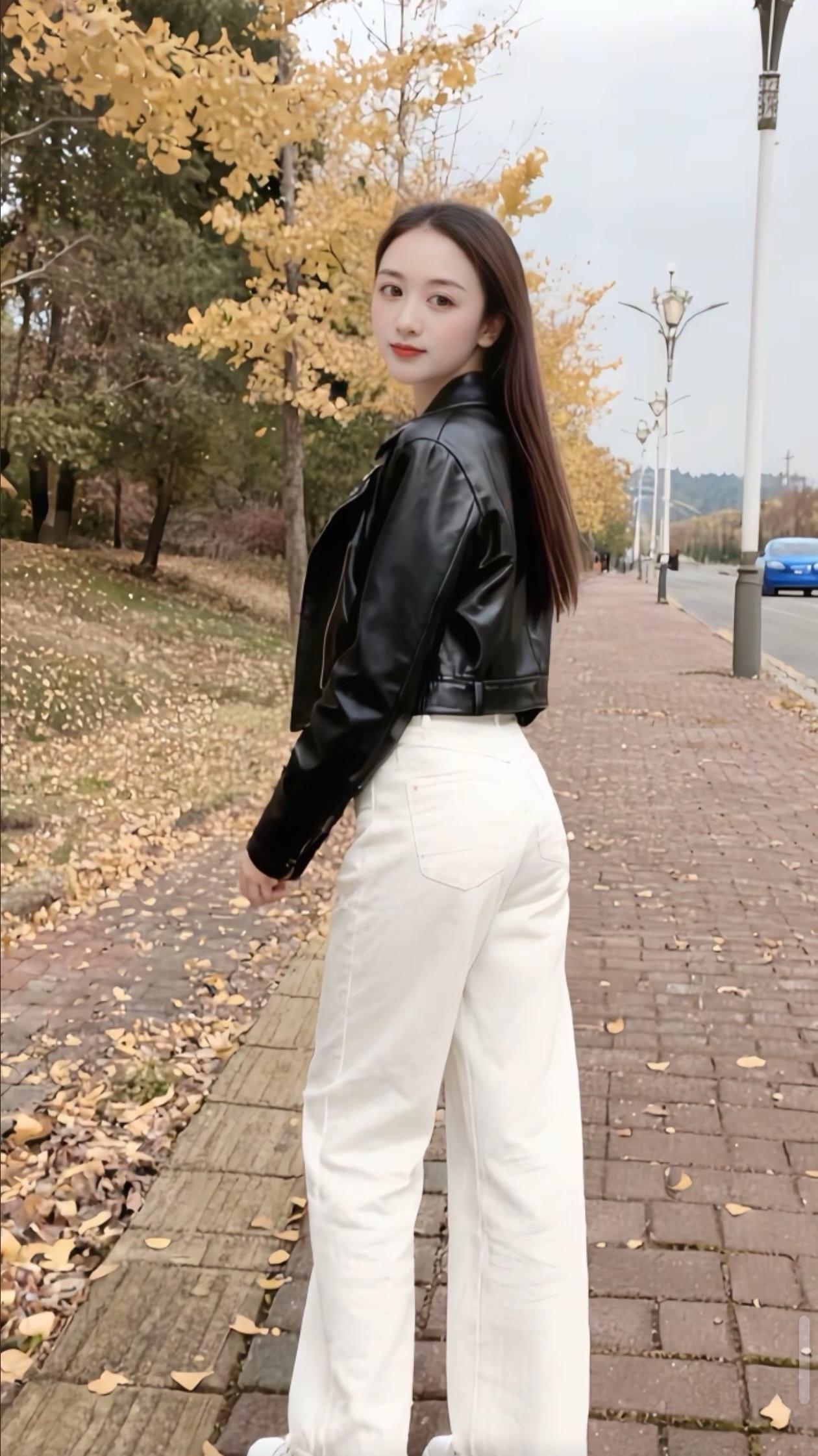 黑色皮衣搭配黑色丝袜,帅气又时尚!