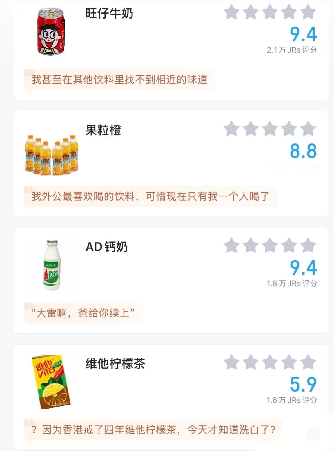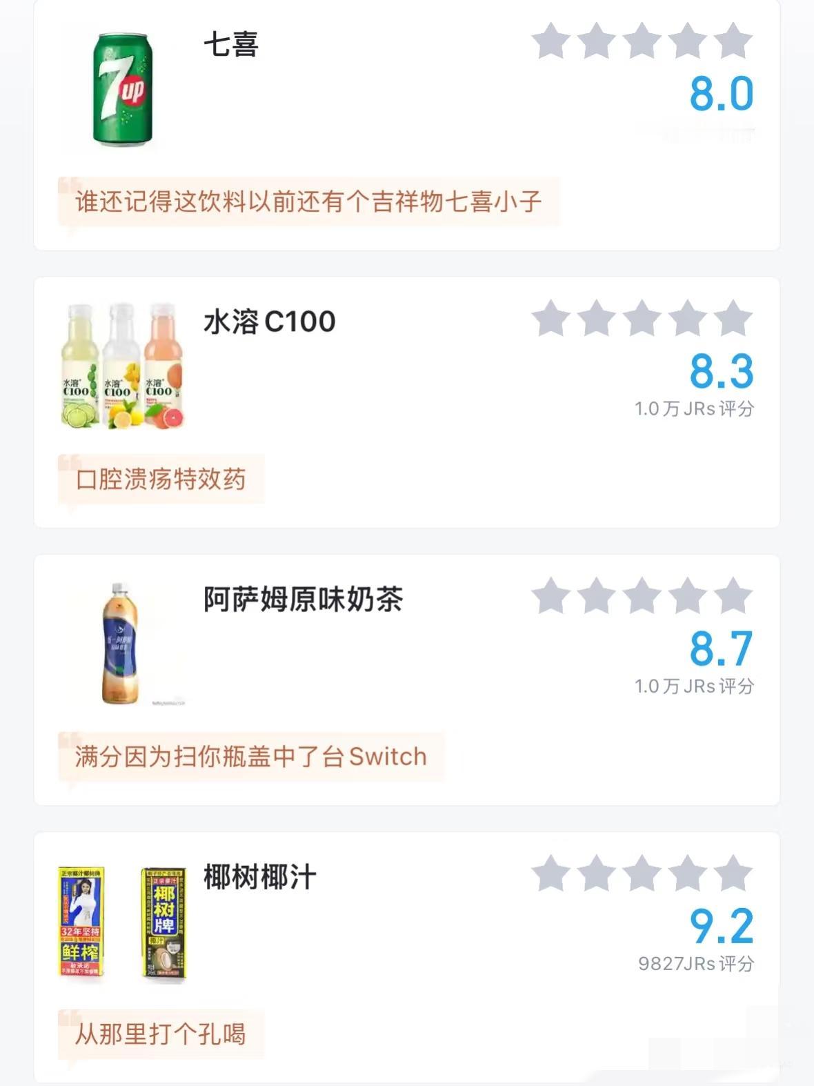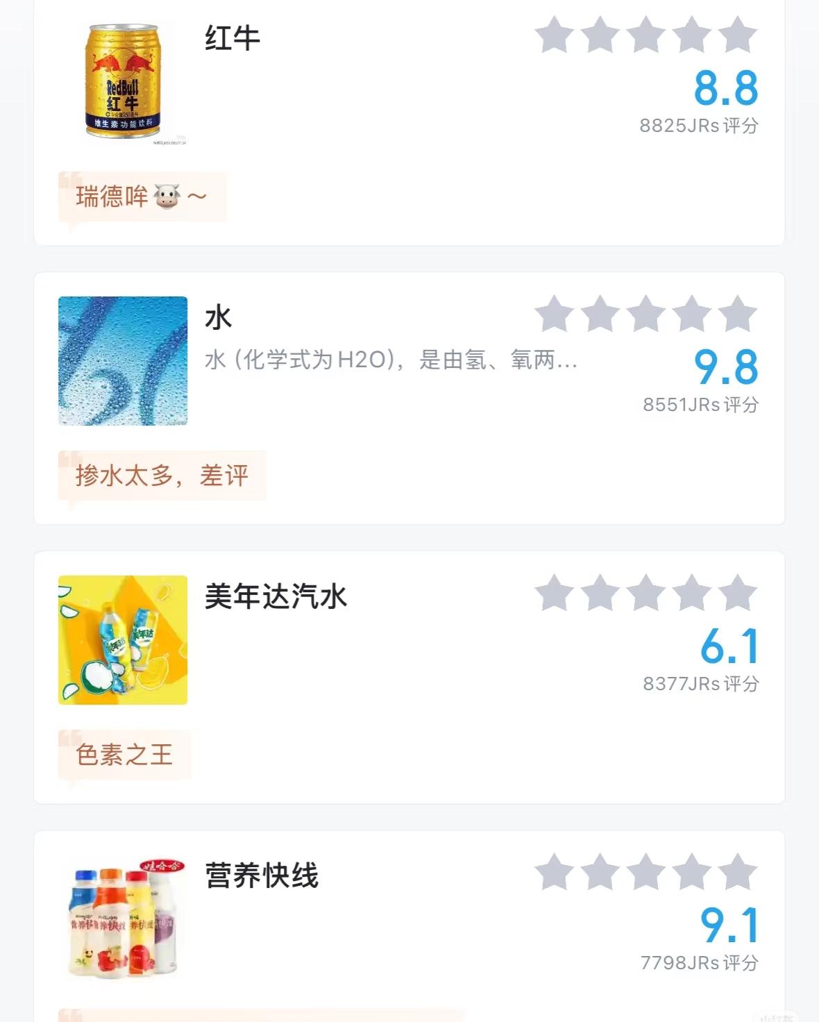 某知名网站饮料排名打分,大家可以看下,跟你的口味是不是差不多。 反正更我的差不多。 分数最高的是水,9.8分。 其他可口可乐、雪碧分数也挺高,不过雪碧那个甜味我不喜欢。 没想到的是AD钙奶分数这么高,达到了9.4分。