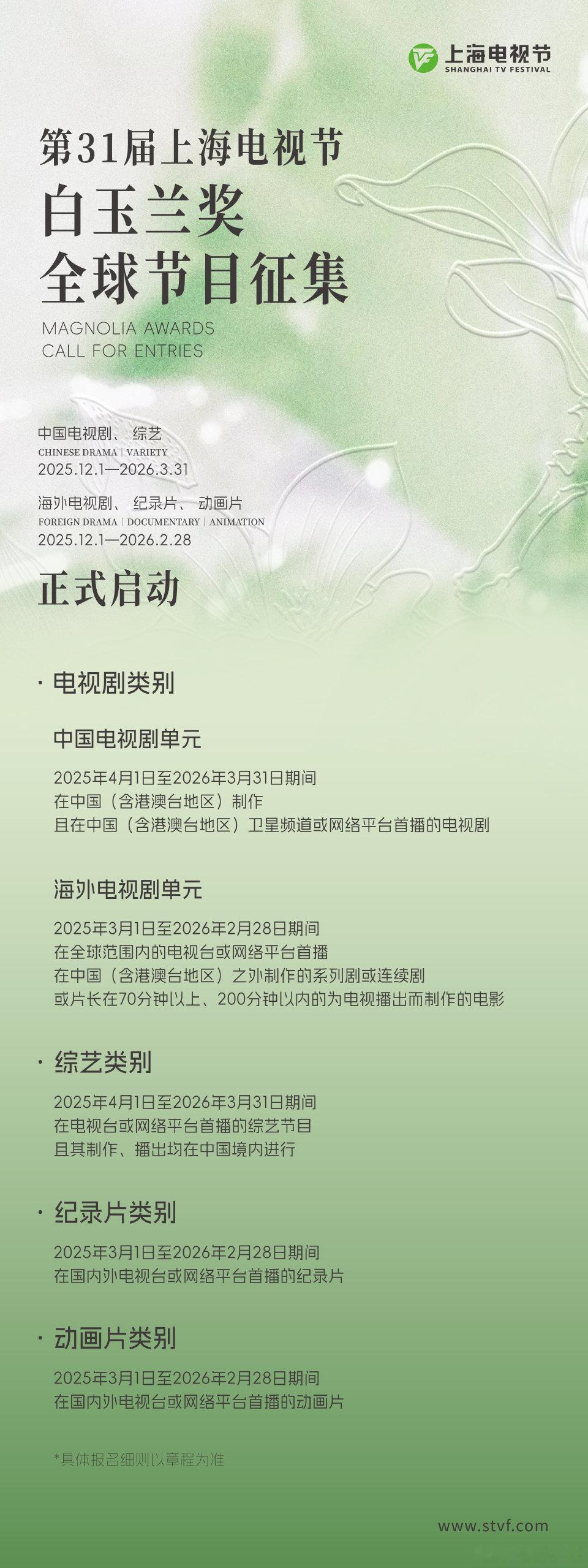 第31届白玉兰开始了,2025.04.01-2026.3.31之间播出的电视剧均可报名参加。有些剧真的很值得拿奖,最起码也值得一个提名,拭目以待吧。