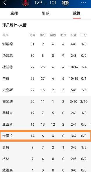 火箭老将卡佩拉真是便宜又好用!在今天火箭客场以129:101大胜爵士的比赛中,卡佩拉再次打出了非常高效的表现。 全场比赛下来,卡佩拉替补出战14分钟,投篮4中3非常高效的得到6分4篮板1抢断2盖帽。 今天火箭客场揍翻爵士的比赛里,卡佩拉又让球迷见识了什么叫“性价比天花板”。 14分钟替补出场,4投3中拿6分4篮板,还顺手摘了1抢断2盖帽,防守端那两下封盖直接把爵士的内线冲击摁了下去,这表现看得人直拍大腿。 可能年轻球迷不太熟,这位31岁的瑞士高塔可是火箭老熟人了。 2014年首轮25顺位被火箭选中,当年跟着哈登、保罗打西部决赛,“饼皇”的绰号可不是白来的——挡拆顺下接空接的活儿练得比谁都熟,巅峰赛季在火箭拿过场均16.6分12.7篮板的两双数据,后来去老鹰还当过联盟篮板王。 今年夏天火箭用三年2150万把他签回来,算下来场均薪水下720万,这价格在现在的NBA简直跟白捡一样。 这么说吧,这份合同有多值?火箭总经理斯通自己都承认,卡佩拉的市场价至少该是千万级别的。 主要是他在老鹰被年轻的奥孔武顶掉了首发,出场时间被压缩,才给了火箭捡漏的机会。 别看他现在打第三中锋,真要拉出来,在联盟一半的球队都能稳坐首发。 他的“好用”从来不是靠花哨技巧,全是实打实的硬功夫,进攻端不用占球权,只要队友能传好球,他顺下吃饼的效率还是联盟顶级。 防守端更不用说,身高力量摆在那儿,卡位、护框、抢篮板是一条链的稳定,之前赢勇士那场,他18分钟抢12个篮板,正负值+16,直接成了取胜关键。 为啥能做到又便宜又好用?一方面是市场时机赶得好,老鹰要年轻化,他想走,火箭刚好缺内线保险,两边一拍即合。 另一方面是他对火箭太熟了,不用磨合就能插进体系,教练组喊一声战术,他立马知道该往哪儿跑、往哪儿站。 而且他这打法不靠手感,靠的是站位和习惯,31岁的年纪状态一点没下滑,每22分钟还是能交出接近两双的产出。 对火箭来说,这钱花得太值了,亚当斯常年有伤病风险,申京也需要轮休,卡佩拉就是最靠谱的替补。 不用占用太多薪资空间,还能在强对抗比赛里顶内线、在关键回合补防守,这种即插即用的老将,在漫长赛季里太重要了,今天打爵士这14分钟的表现,不过是他性价比的又一次兑现而已。 以上都是个人观点,对此您有什么不同的看法,可以在评论区留言讨论!!!