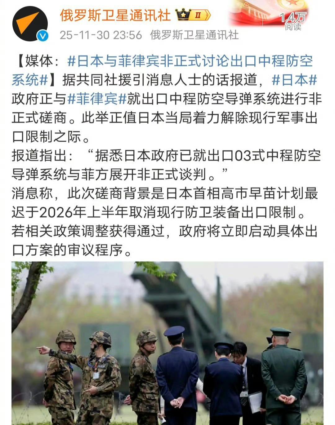 日媒爆料:高市早苗欲批准对菲导弹出口! 据日媒援引消息人士称,日本政府已就出口