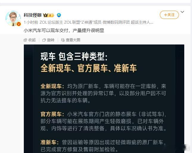 小米卖展车这个事,不同立场博主就能解读出不同的东西有的说,哎呀,小米这肯定是产能提升了,后续交付还会更高,赢!相反立场的则会说,小米现在就能有展车卖,肯定是订单不足了,现在买就是冤大头,输!大家说,是输还是赢呢? 小米汽车将启动现车选购