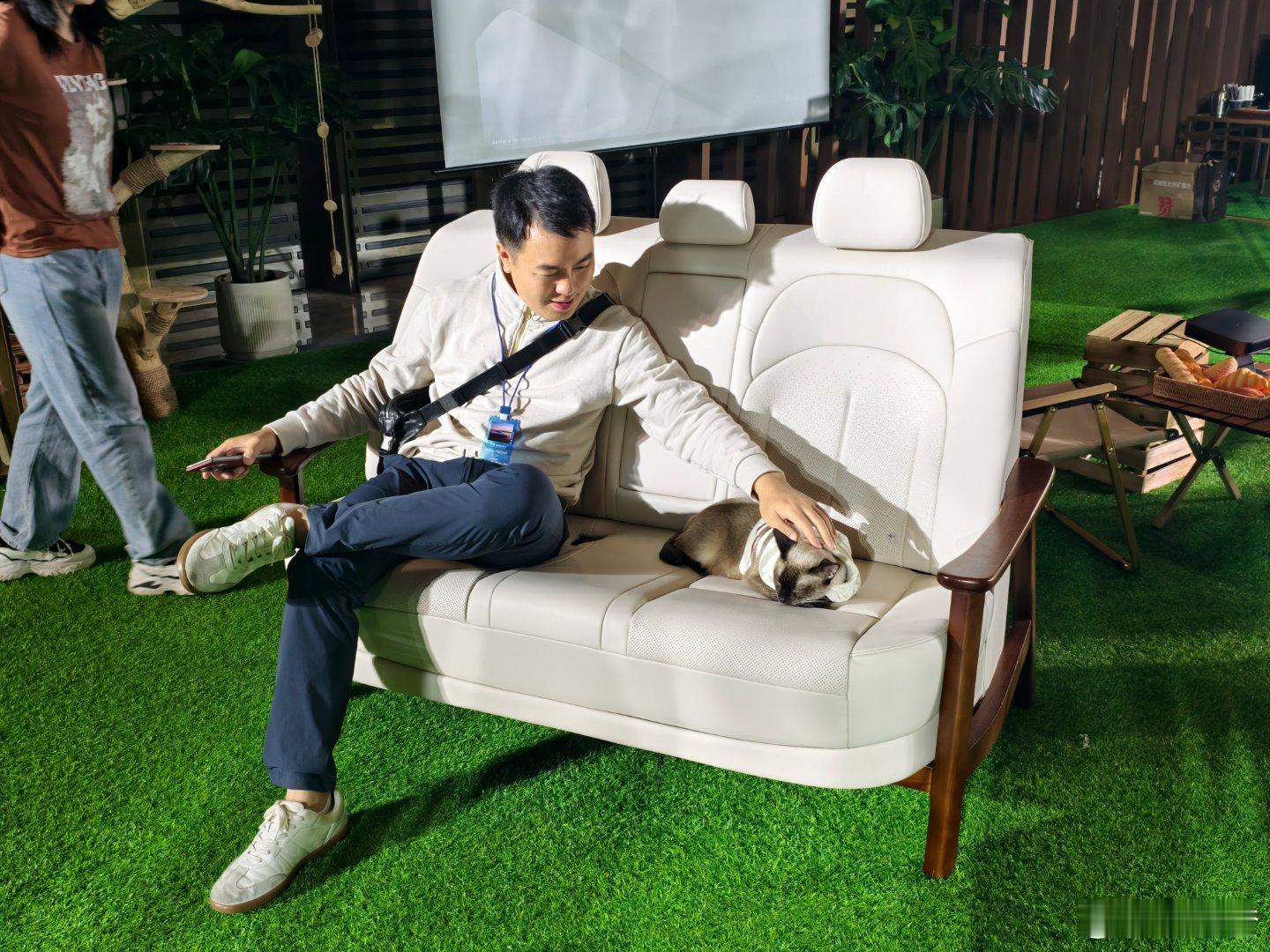 东风日产N6这个发布会现场座椅确实很舒服现场500张双人沙发前后左右空间都很大,人几乎是半躺状态还有个腰靠,我这种腰椎不好的人绝顶福音然后还有小桌板,🍿,就是少了杯可乐这个放家里应该也挺不错的百万级后排大沙发东风日产N6大v聊车