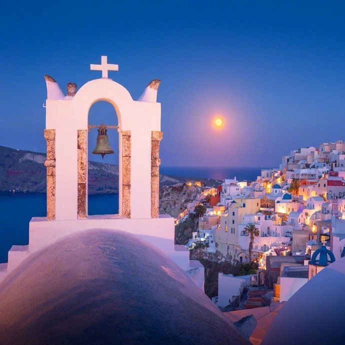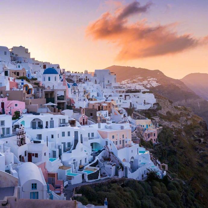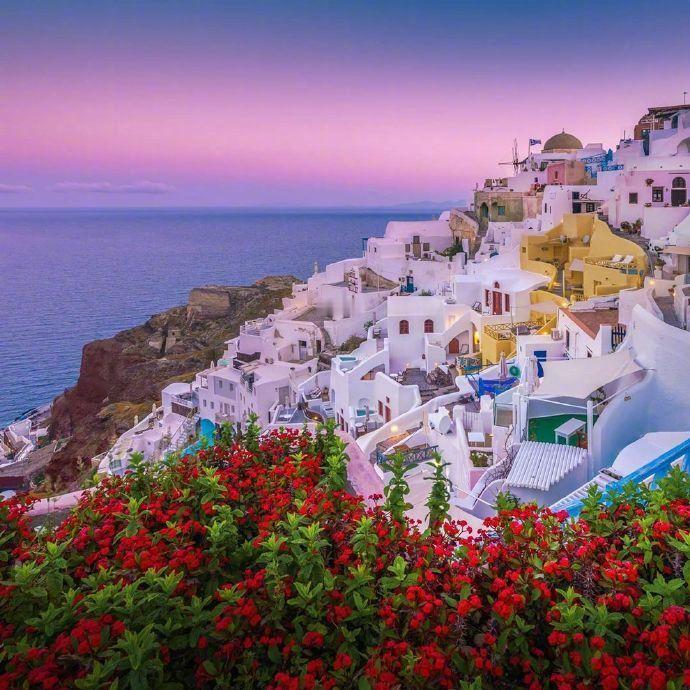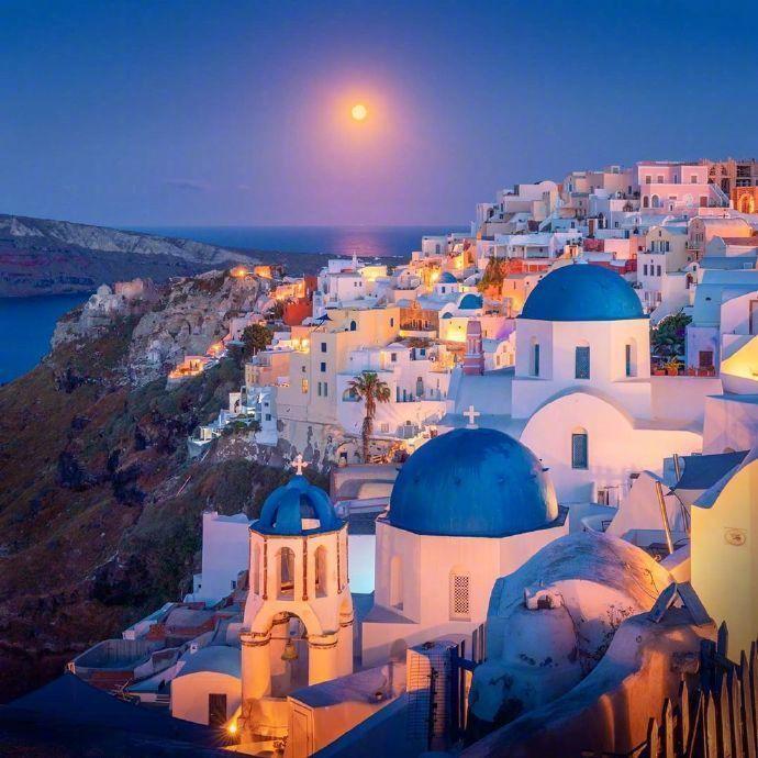 傍晚的圣托里尼,真的迷死个人上帝视角看世界