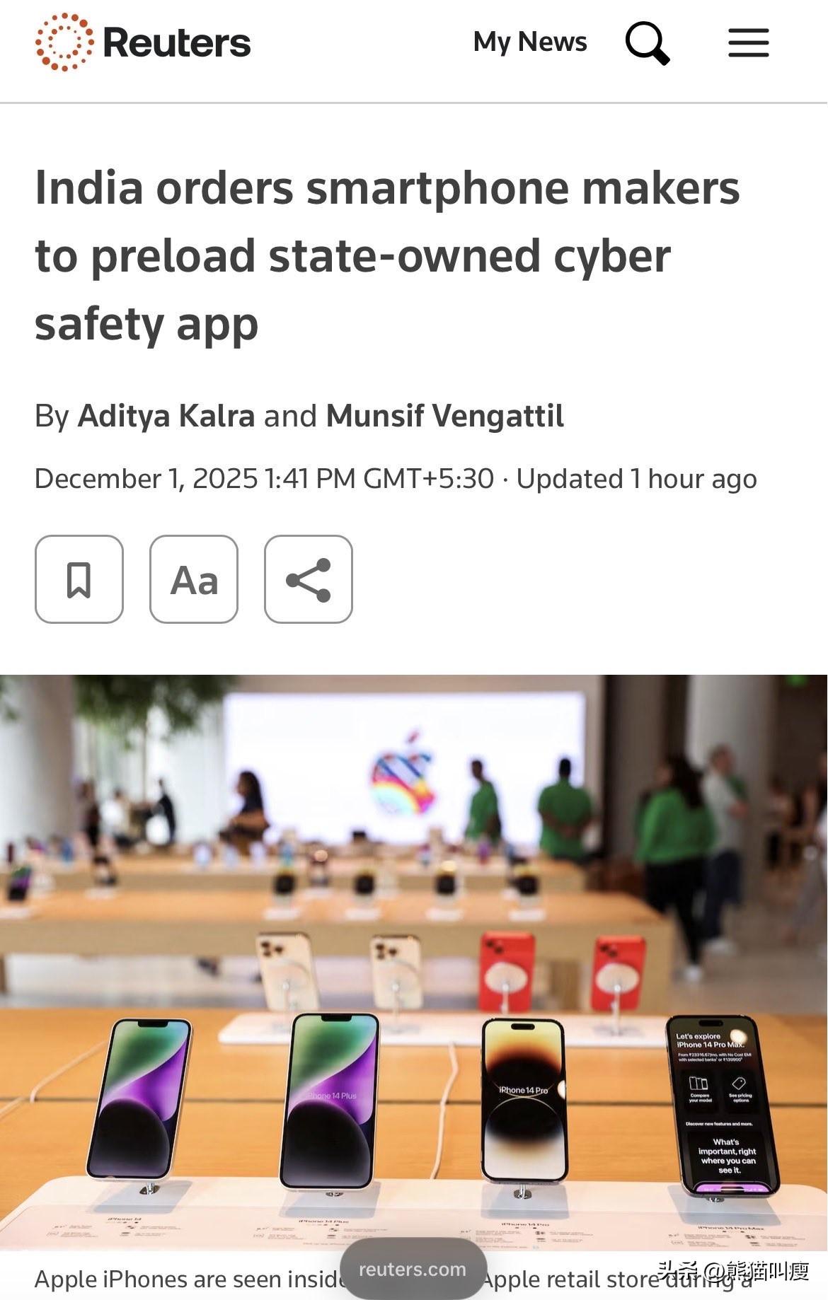 未来成为全球手机最大市场?印度想了想,还得先为这么多手机安装个后门。 印度要求90天内,所有的手机厂商为在印度激活的新手机预装他们开发的“安全”软件,不能卸载也无法禁用。 对已经连接入印度电信网络的手机,则需要强制推送安装。 这一举措对苹果可以说是当头棒喝,谁都知道他们对第三方软件的态度。不松口,可能就没了市场。
