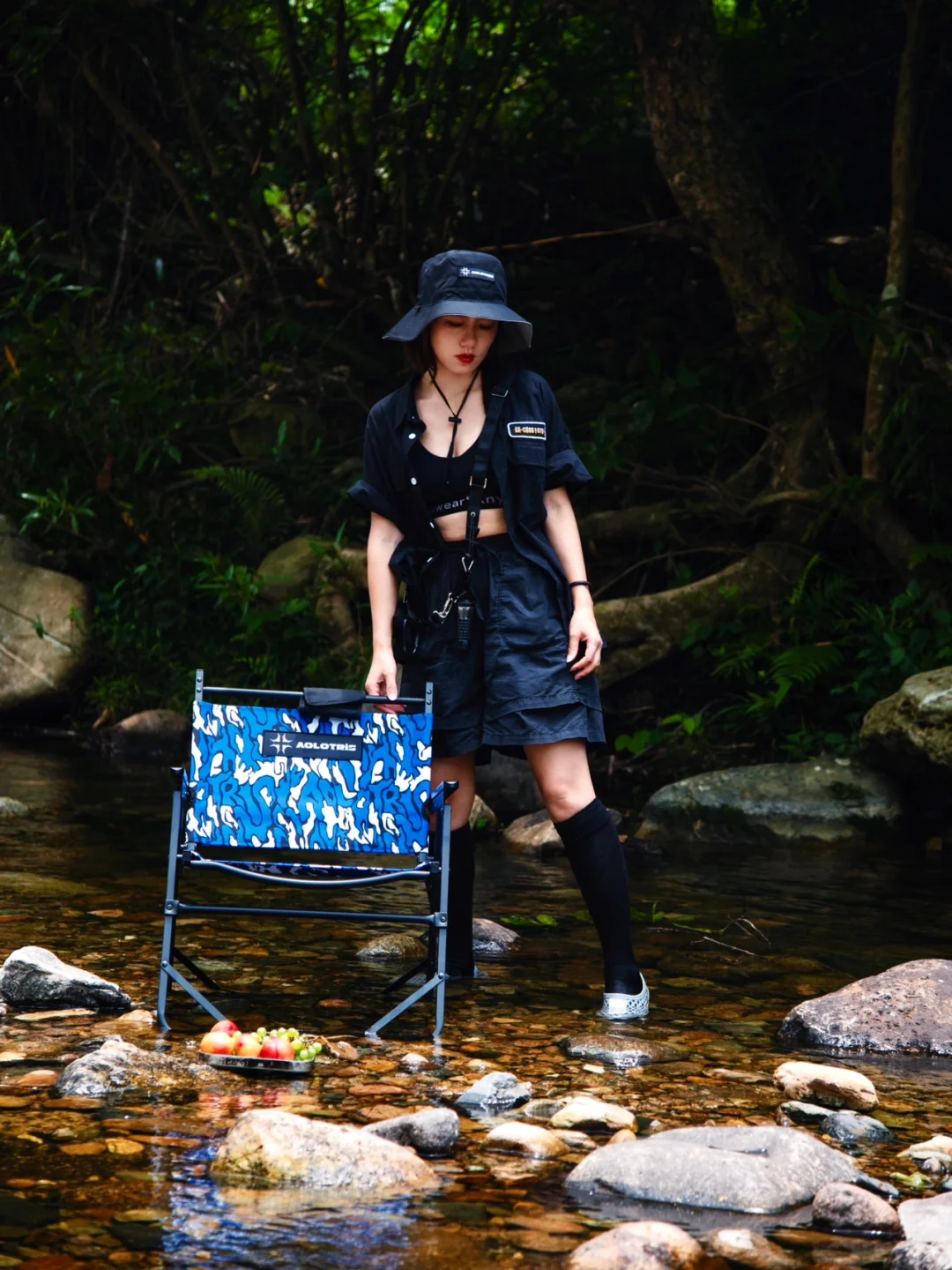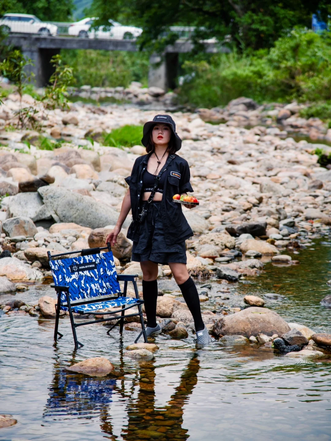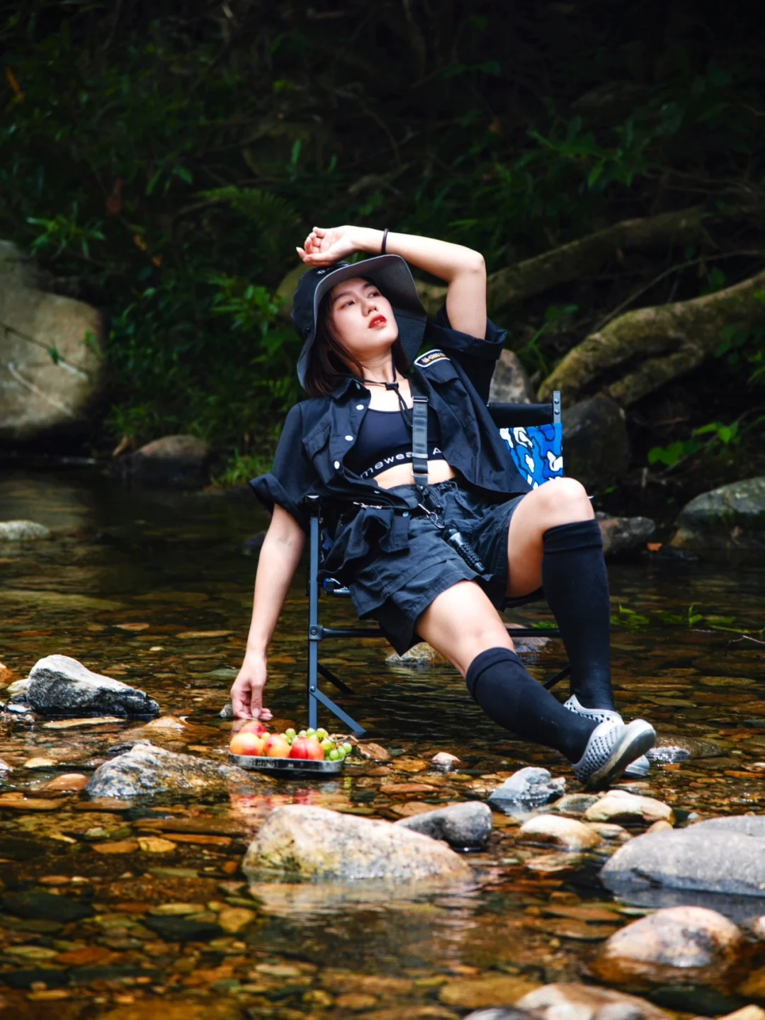 找一条溪水平缓,河面宽敞,水中鹅卵石清晰可见的营地,在南宁并不算太难,但人少真不容易。之前去过的内朝、山内农场、春舍里、敢艳二南溪、冬春峡谷、英俊峡谷都是蛮不错的选择,拉最则是我去过较多的营地~从野营地到收费营地都保持着我对它来原始状态的喜欢。 在树荫溪下,泡在水里,惬意的躺着吃吃喝喝,这个夏天码住这样的消暑方式 . 🏕️营地:拉最青杉溪谷生态农场 ⏰耗时:南宁市区出发1.5h左右 📝设施齐全,车到营地路好走,有厕所有热水,有亲水平台,有树屋平台,可水上搭营,有农场,有沙池,有民宿,有泳池,可玩水摸鱼路亚划船…可玩性非常高,适合全年龄段出行 . 这次想做个酷酷的辣妹 酷酷露营桌椅:傲洛 酷酷的穿搭: 帽子:傲洛 多功能挂带:傲洛 运动内衣:AlmondRocks 长袜:AlmondRocks 裤子、衣服、溯溪鞋都是无牌随眼缘买的 .