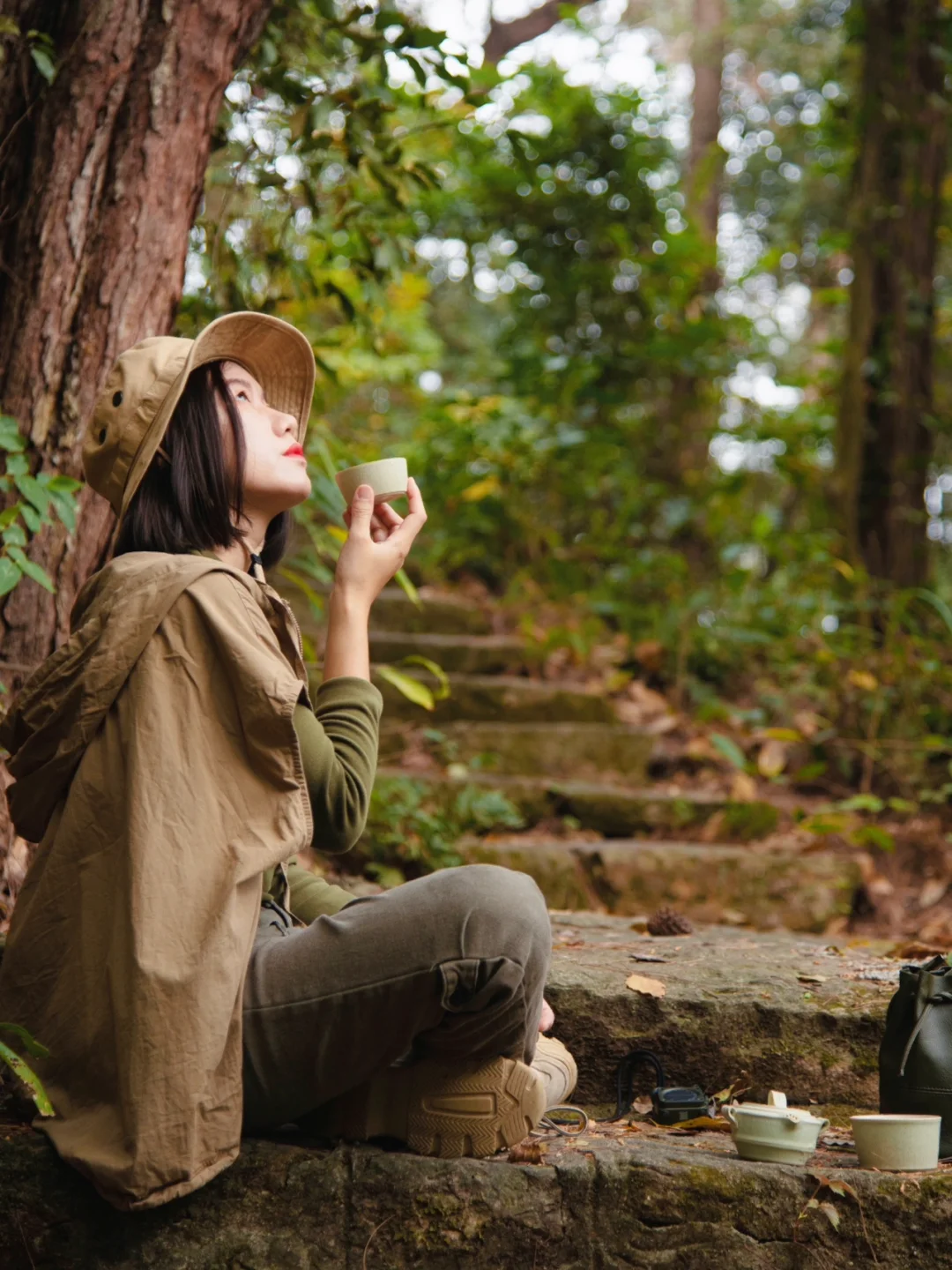 小徒步背包、徒步鞋、墨镜、帽子,舒适衣服,水500ml,保温壶300ml,春竹快客杯、茶叶、相机📷