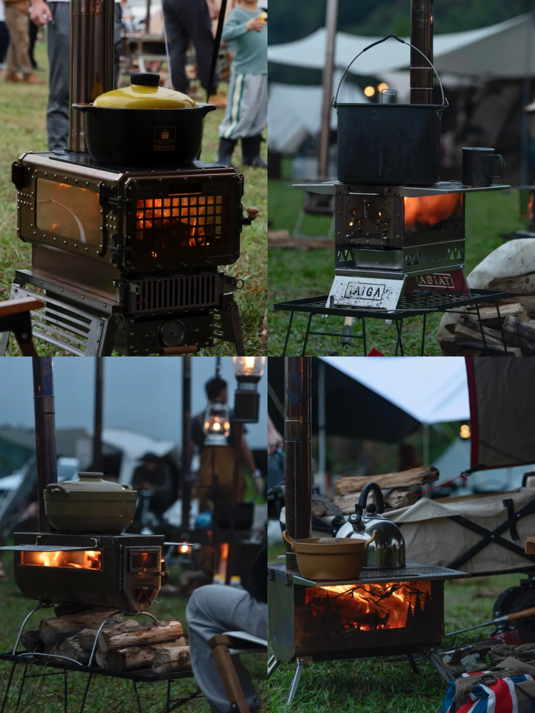 在这之前我都没见过这么多柴火炉,也不知道柴火炉还可以这么卷。高高的烟囱、大大小小各种款、烧颗粒的、烧柴的眼花缭乱