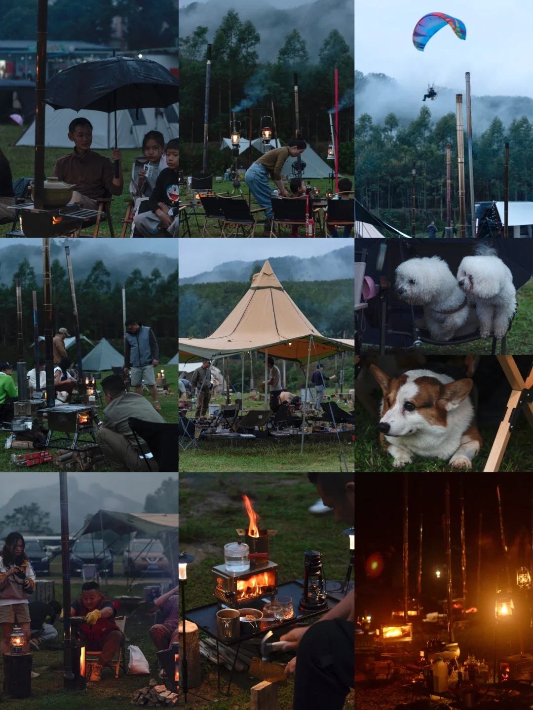 围炉露营围炉煮茶围炉美食,虽然阴雨不断但也没有破坏大家的焚火热情,还解锁了打伞露营新体验。在南宁阴雨天气下能体验这样露营氛围也是绝绝子了