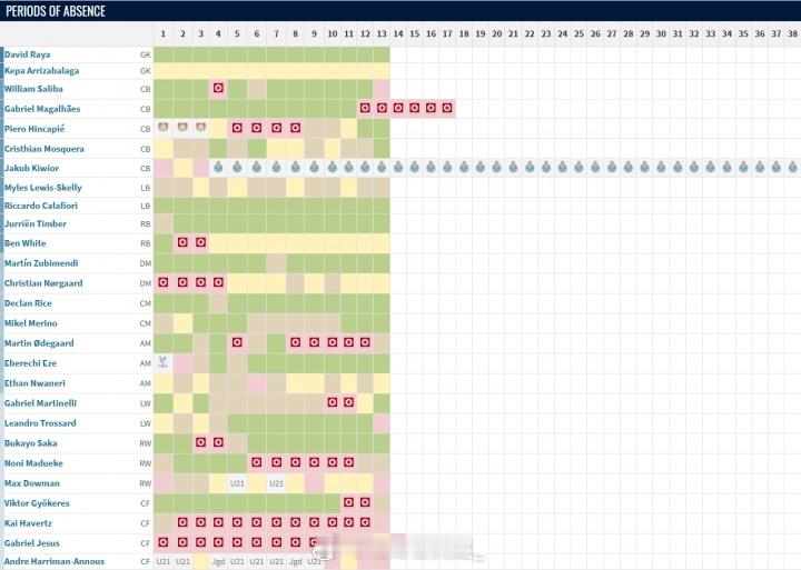 阿森纳本赛季至今所有伤员名单:热苏斯哈弗茨诺尔高本·怀特凯帕厄德高×2萨卡萨利巴×2因卡皮耶马丁内利马杜埃凯约克雷斯加布里埃尔特罗萨德