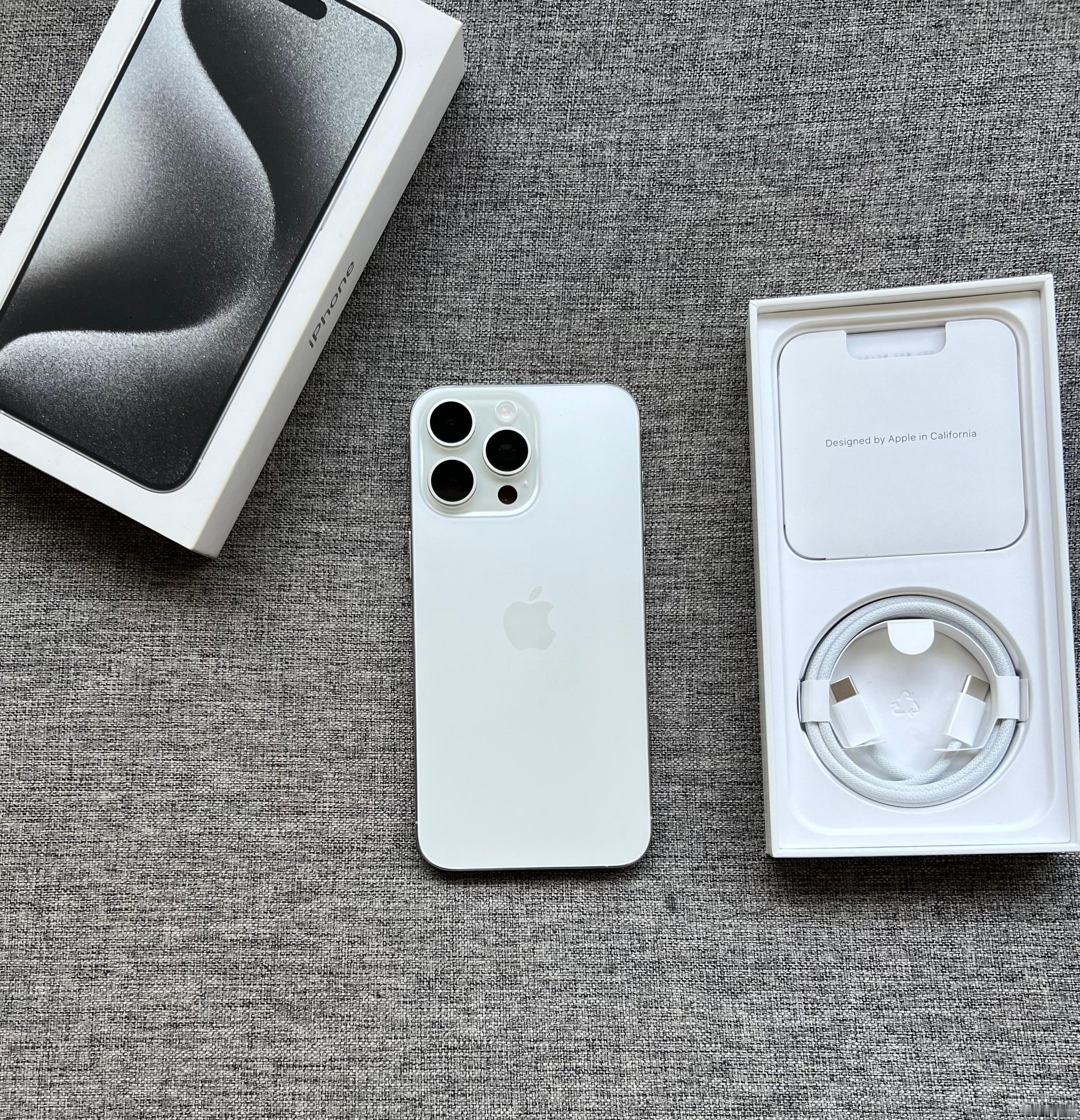国行iPhone15 Pro Max 256G 白色钛金属,99新全套,电池效率90,店保三个月非人为损坏。5299