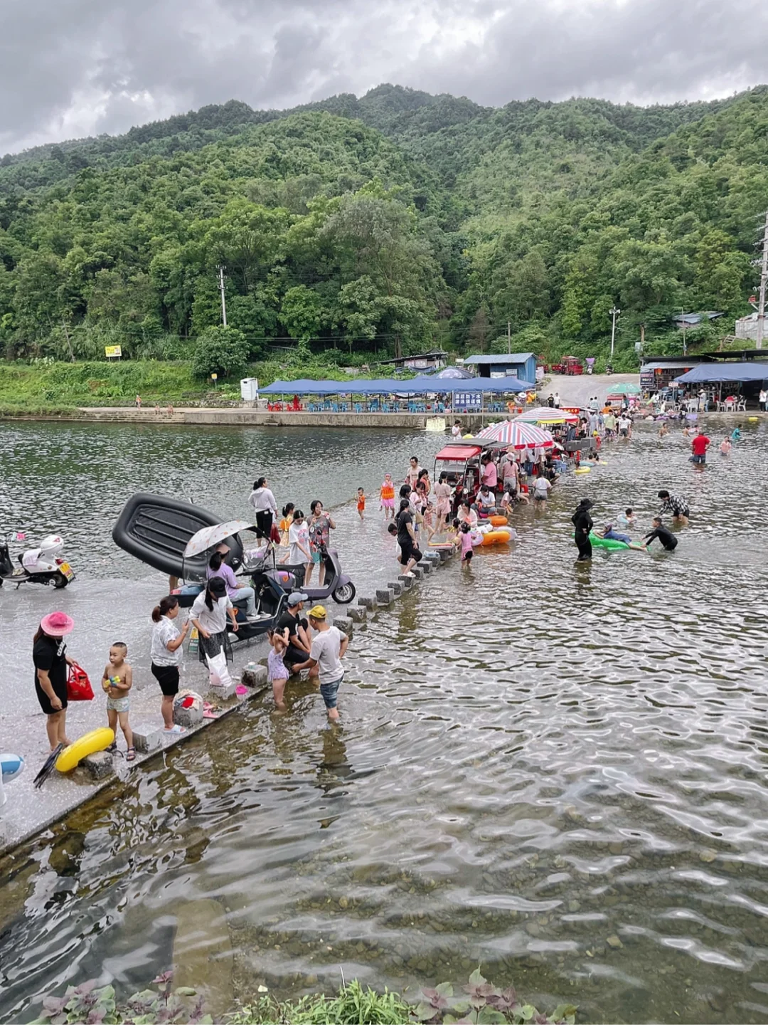 是敢燕大峡谷与东春大峡谷交汇形成的小水坝。丰水期,水会没过坝堤形成小瀑布。坝堤上有一条很有特色的水上集市。水坝水质清冽,浅而宽,非常适合带娃玩水、游泳、皮划艇、桨板…