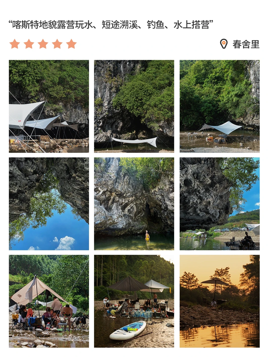 📒:收费,喀斯特地貌营地,可过夜露营、溯溪、玩水、游泳、看星空、水上搭营;有厕有热水淋雨