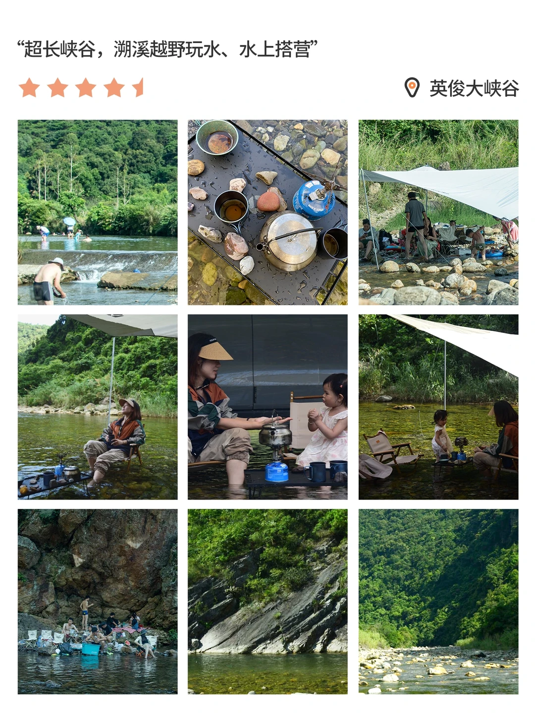 📒:收费,车到营地,可过夜露营、溯溪、桨板、游泳、水上搭营;有厕所有热水淋雨