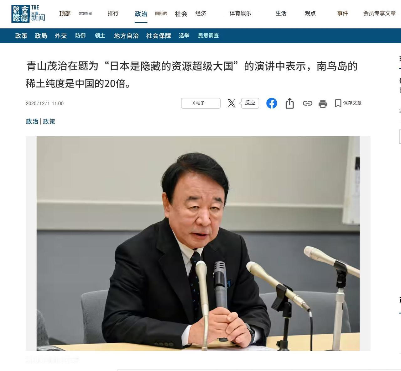 日本议员:南鸟岛发现稀土泥浆,纯度是中国陆上稀土的20倍! 小日子简直在白日做梦! 纯度再高对于精炼加工没什么用,同样还是要提炼。 更重要的是,根据《开罗宣言》 日本领土仅限四岛! 也就是说,这个南鸟岛不属于日本。 日本这个国家,可怕在他们把什么事的细节都摸得透透的,民族的特性就是扩张。 弱小时,窝在一隅,处心积虑,那些什么科学家、工程师、地质学家、地理学家先去探路和摸底; 等到机会一到,军国主义就开始招魂和跃跃欲试,不怕冒险,喜欢赌大的。