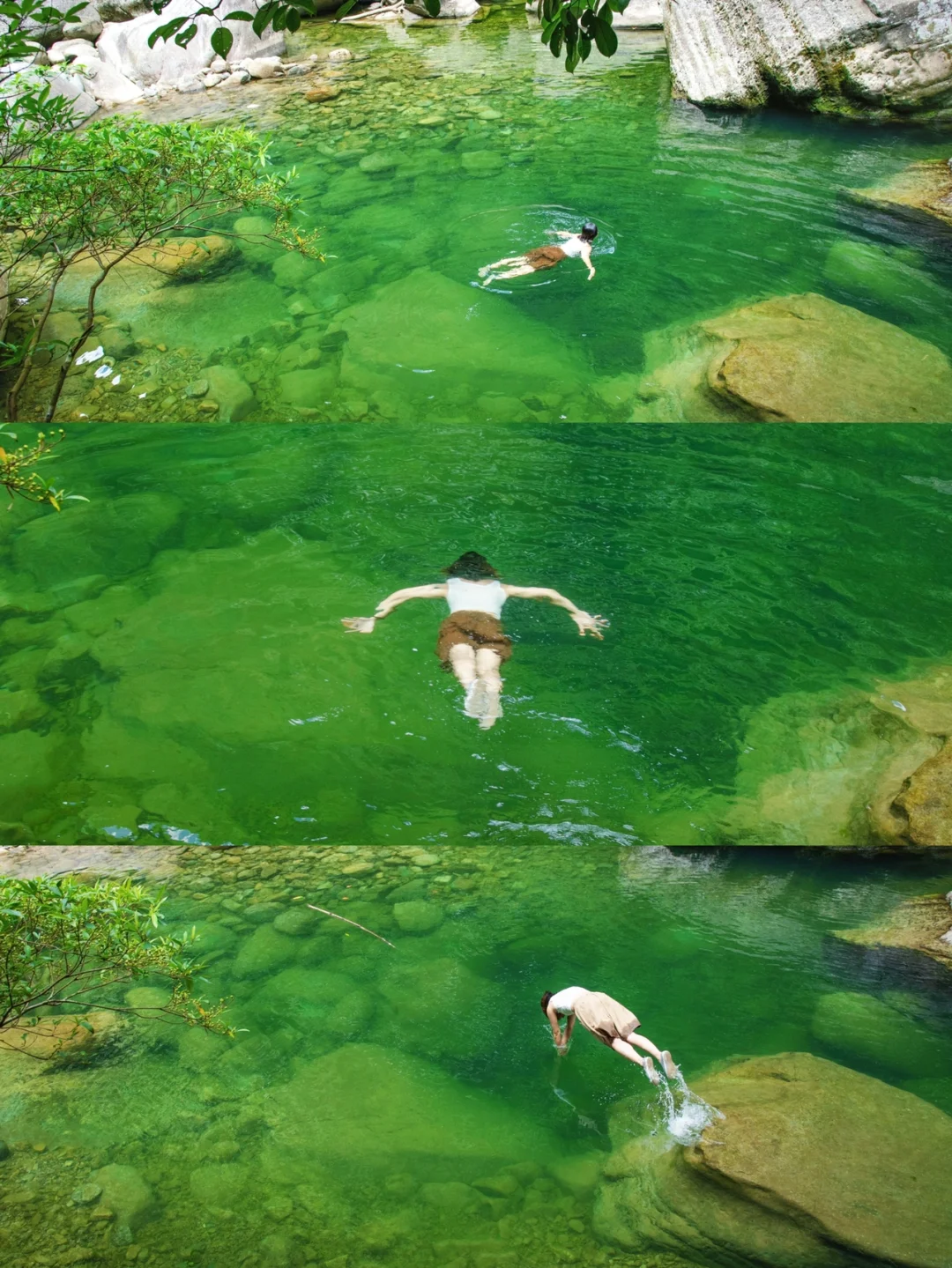 应该没有人能拒绝夏天的玻璃水吧,溯溪玩水潜水看瀑布免费还有树荫,麓女河峡谷你值得拥有。