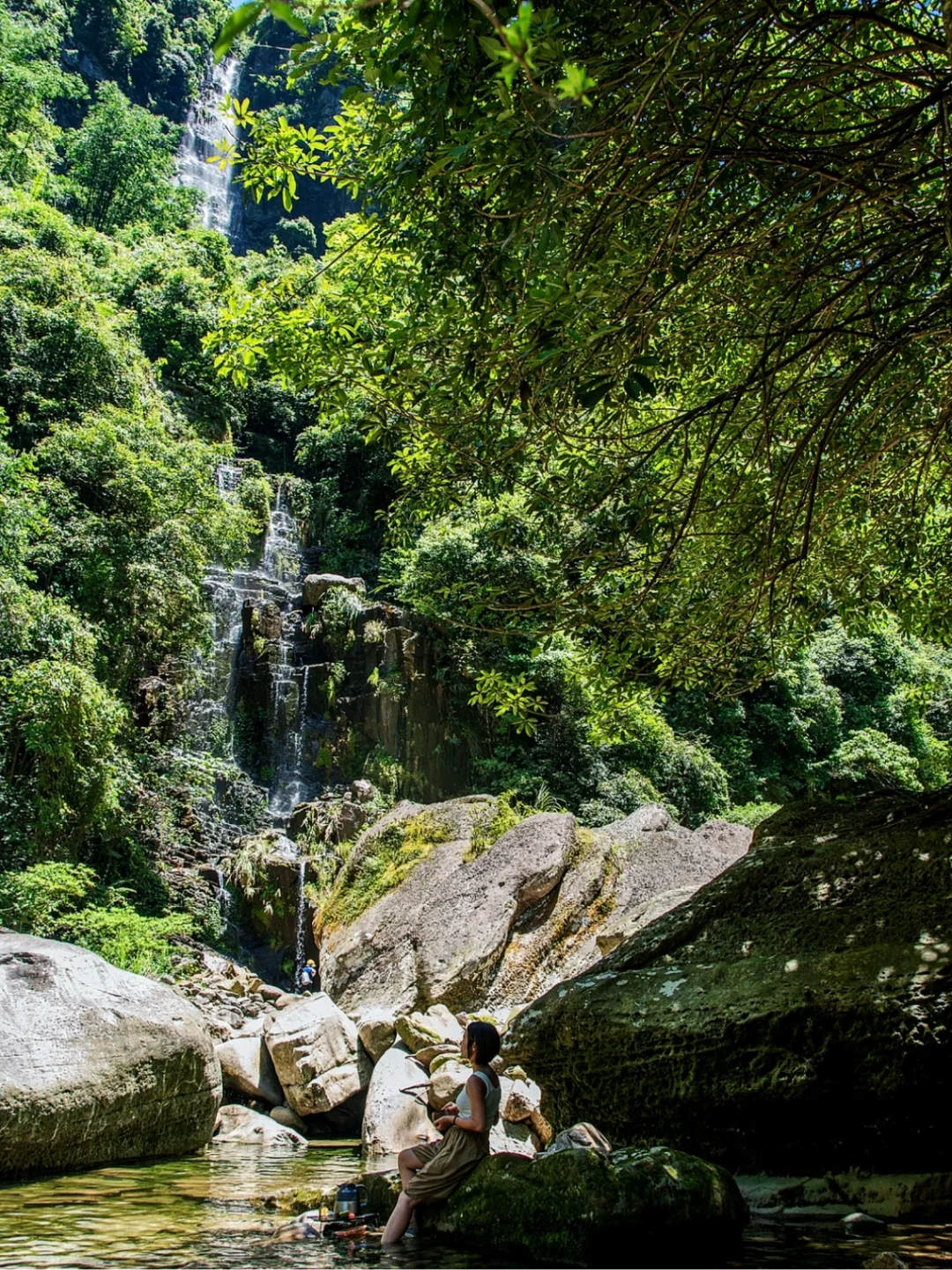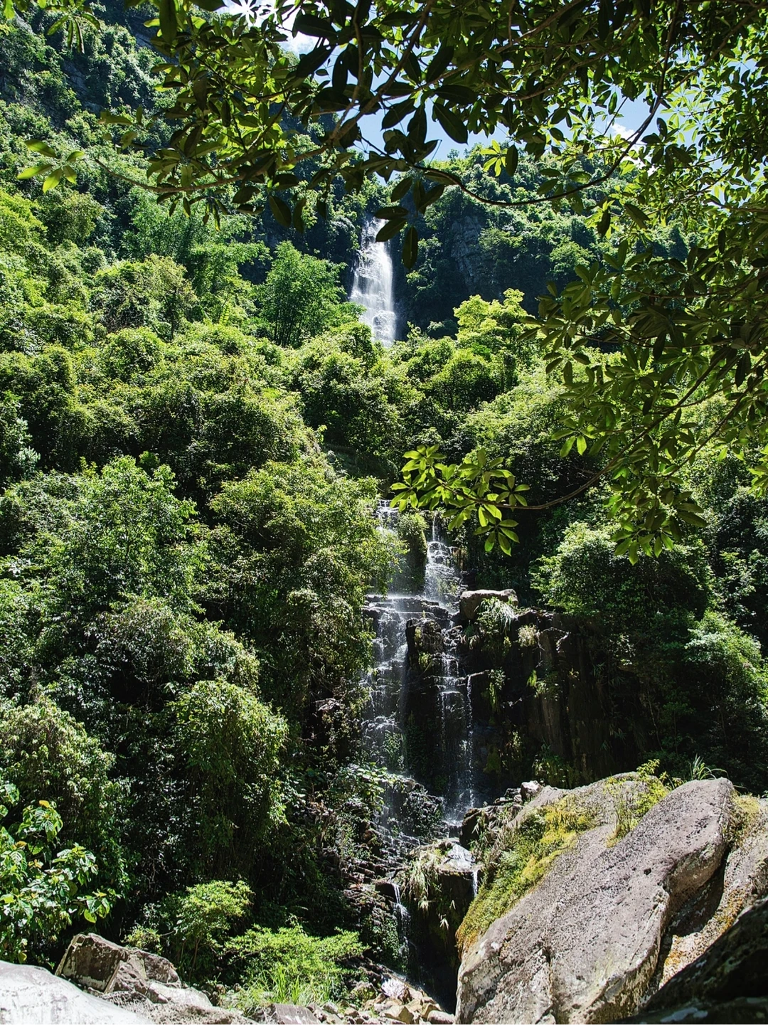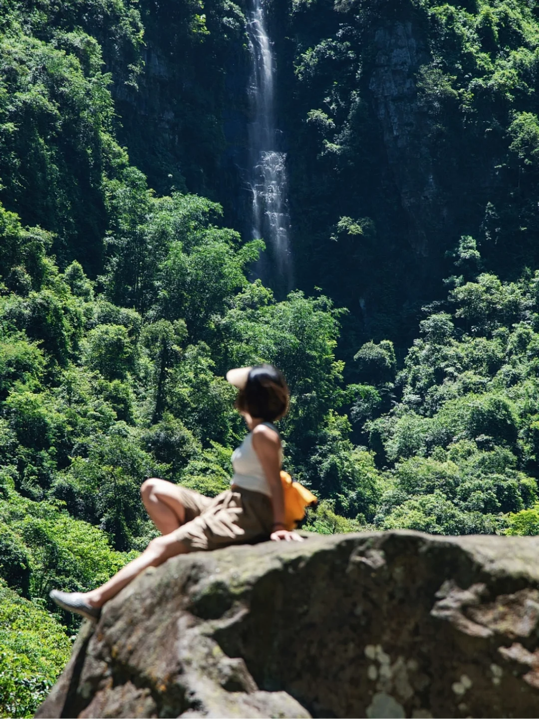8️⃣大概溯溪30分钟就能看到不知名的神秘瀑布,瀑布下面有几个稍微大点的水潭非常漂亮,拍照绝绝子,游泳、深水炸弹、潜水…非常好玩