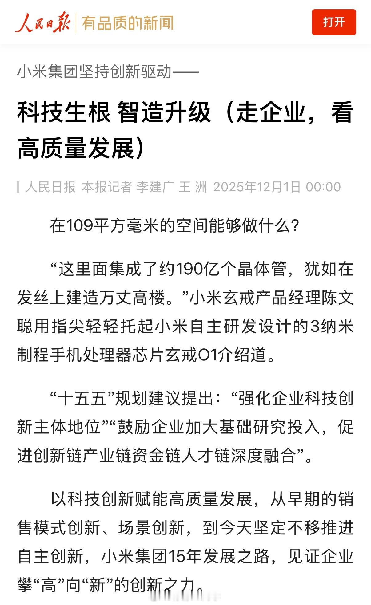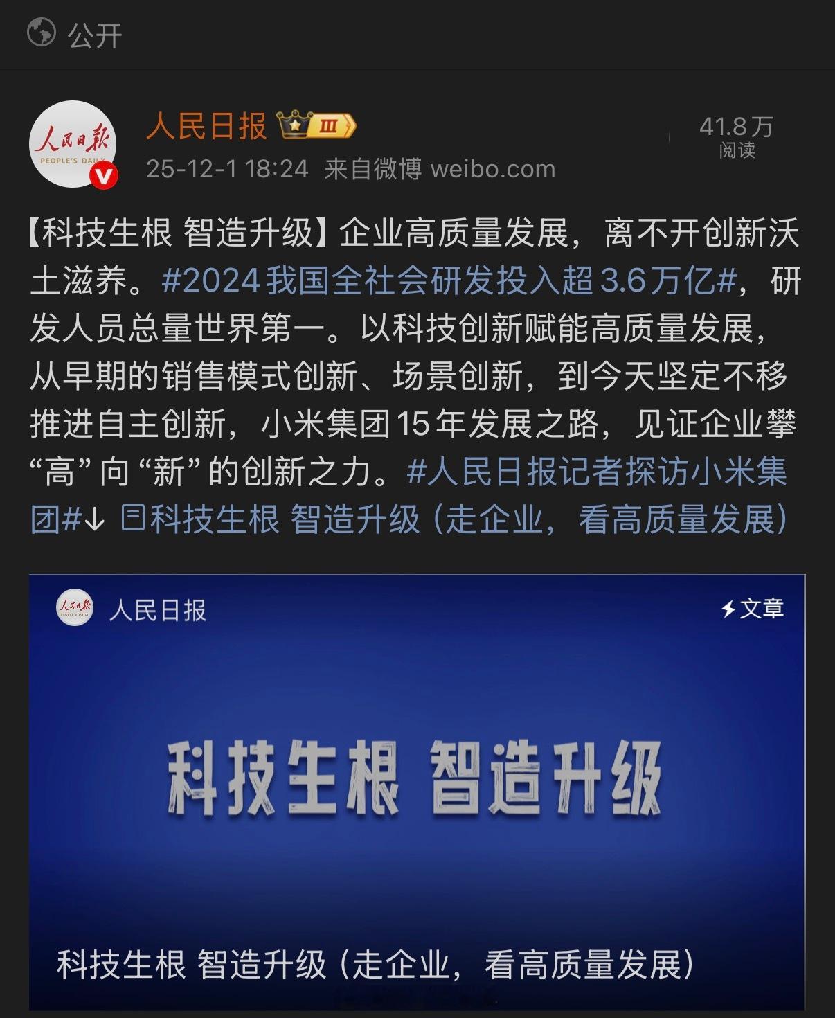 人民日报为小米做了一起专访,提到了小米的手机业务、汽车业务还有智能家居业务,开头还是由小米芯片引入,对小米进行了认可和赞同有央媒为小米集团做背书,这下大家伙应该没意见了吧?人民日报谈小米集团高质量发展