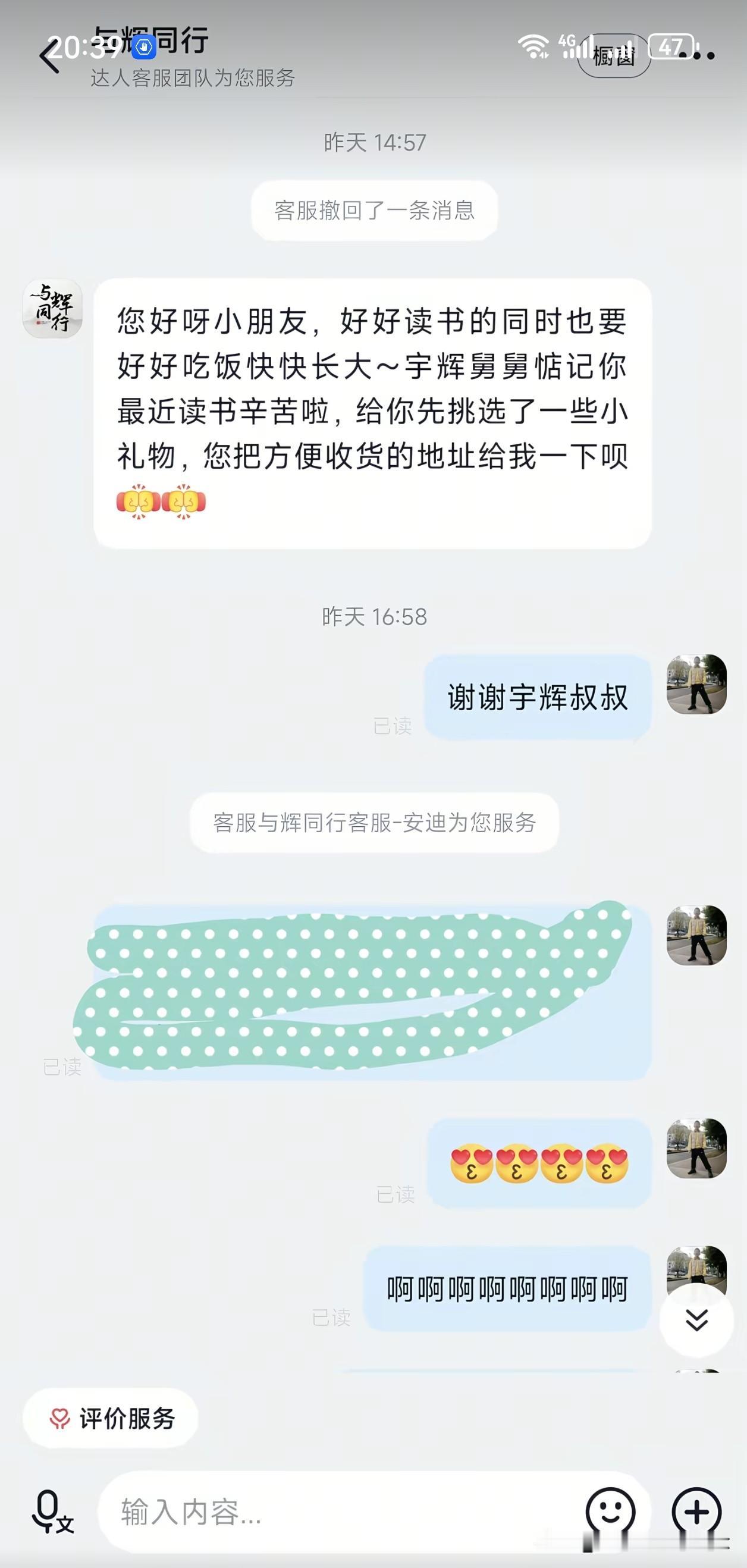 那个被妈妈逼着看宇辉推荐的书的小何同学,真的收到了宇辉寄过去的礼物,不是课外书也不是试卷,而是一箱车厘子。 自从发视频在网上“吐槽”让宇辉别再推荐书之后,不仅得到了宇辉亲自回复,而且宇辉还通过“与辉同行”官方客服给小何同学发消息,要给他寄礼物。 网友一边调侃宇辉可能要给他模拟试卷,一边羡慕小何同学真“幸运”。没想到,宇辉寄来的是车厘子。果然宇辉是懂得“收买人心”的,书籍到车厘子,这是从精神食粮升级到物质关怀了啊! 小何妈妈说,“与辉同行”的客服告诉他们,还有其他礼物陆续发货在路上,让他们注意查收。真是让人211同学羡慕不已。 这份礼物,仿佛是一个温和的回应:成长不止有书山题海,也有四季风物与人间烟火。让你看世界的,有时是书本,有时也可以是一箱恰逢其时的车厘子。没有说教,呵护了一个少年本该拥有的、简单纯粹的快乐。 原来,有些滋味,书本里和生活中,真的可以同时尝到,小何同学收获的,远不止一箱水果的甜。 董宇辉