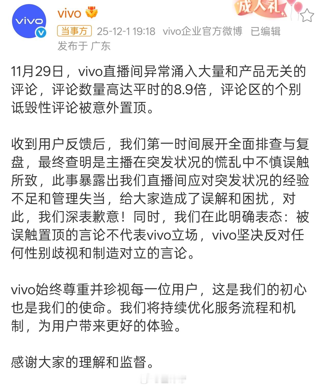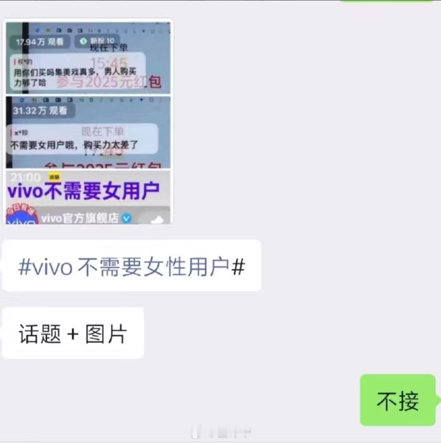 vivo回应直播间风波说vivo不要女性用户的,S系列是给谁出的?有些人太极端了甚至网上还传能接单???要不过来给我下一单啊?