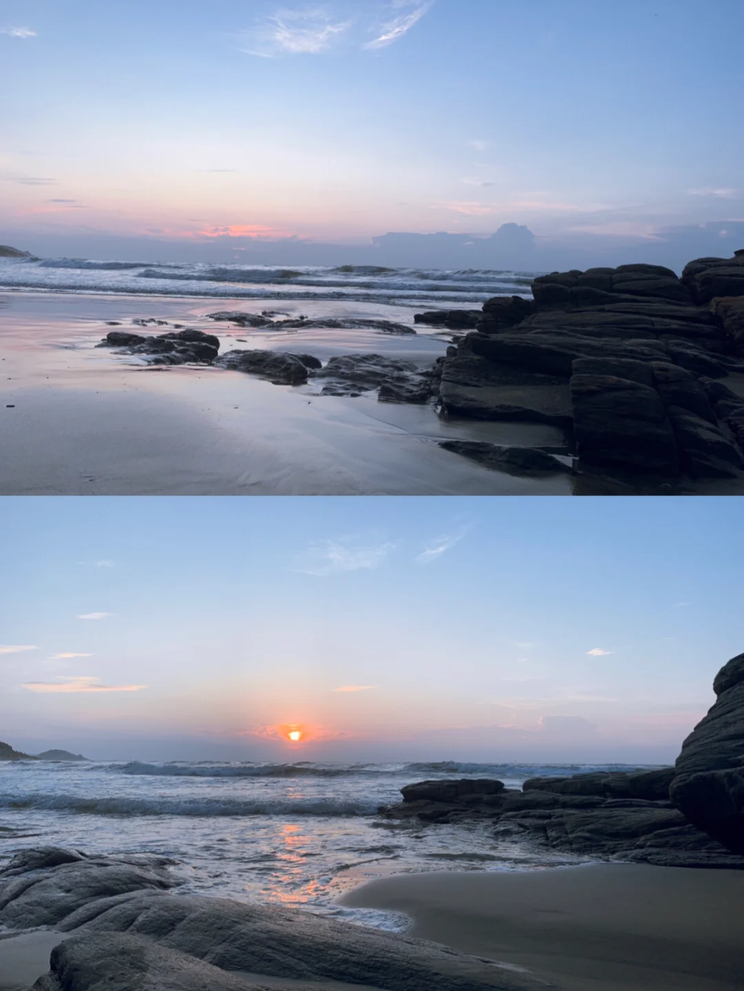 算是个野沙滩商业很少,有个小山顶左边可看日出,右边能直接看到双月湾。我们选择在这里扎营,可以开车到沙滩的停车场,也可开车到小山顶看日出☀,很方便。