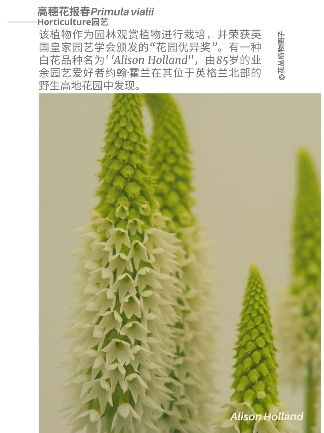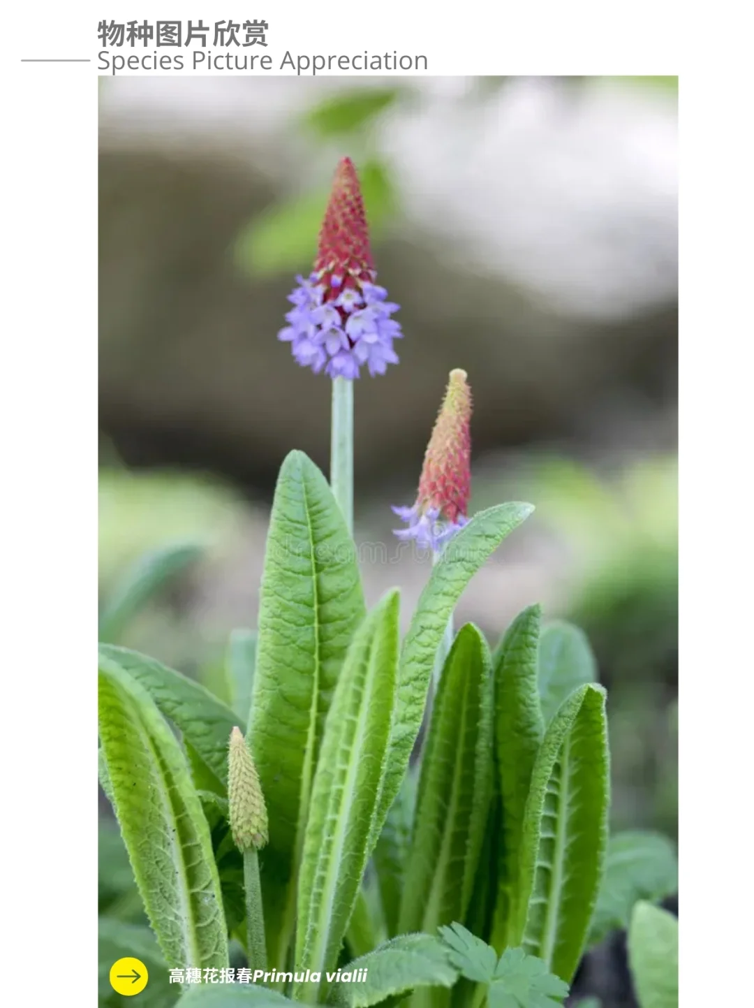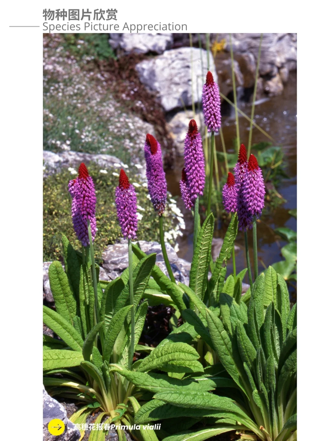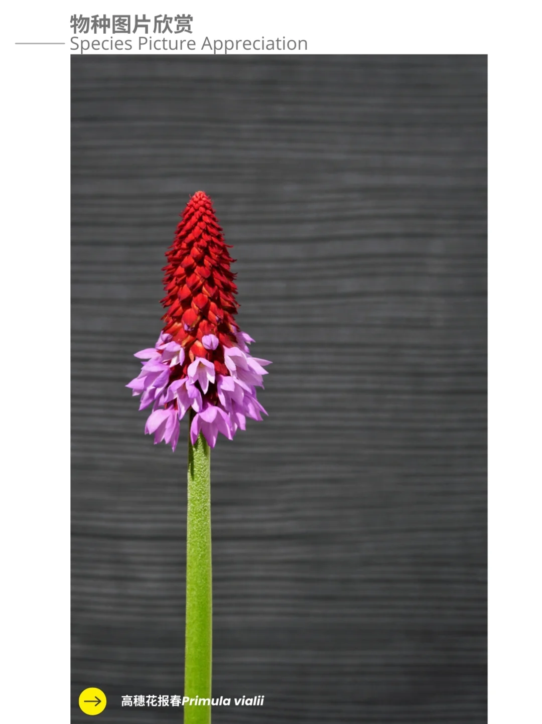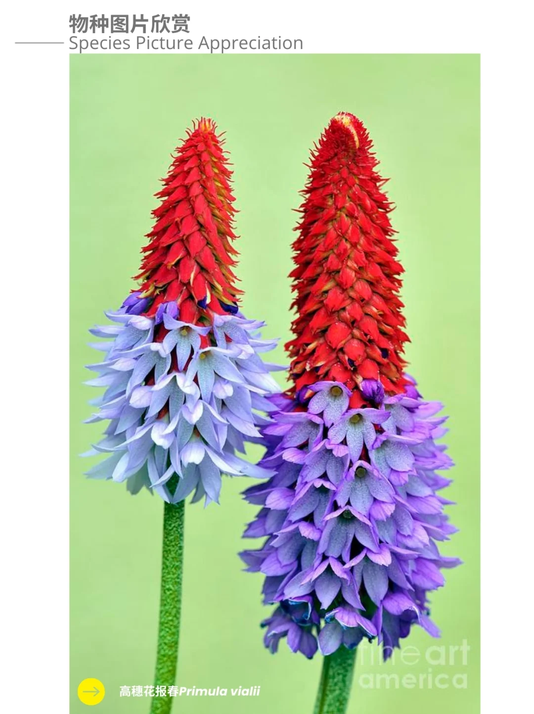 报春花科 报春花属 Primula vialii 维氏报春 四川省 云南省 多年生植物 英国皇家园艺学会 花园优异奖 Primula 报春花科植物高穗花报春Primula vialii,又称维氏报春,原产于中国西南部四川省西南部及云南省北部的高山谷地湿草甸或水域附近。