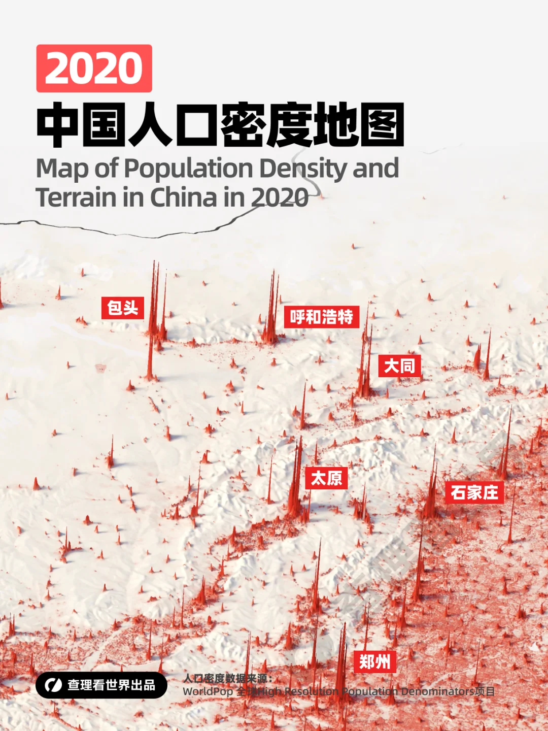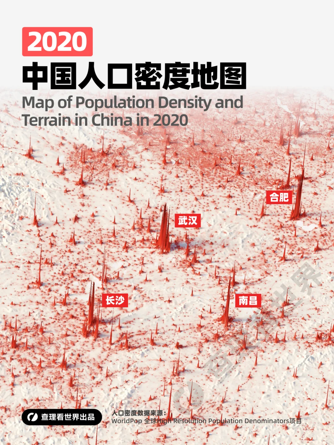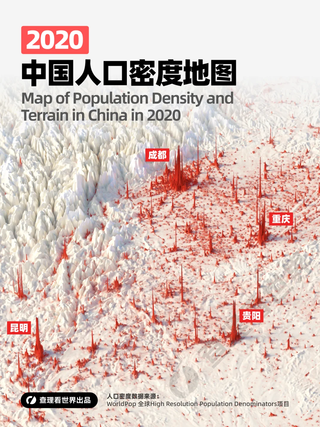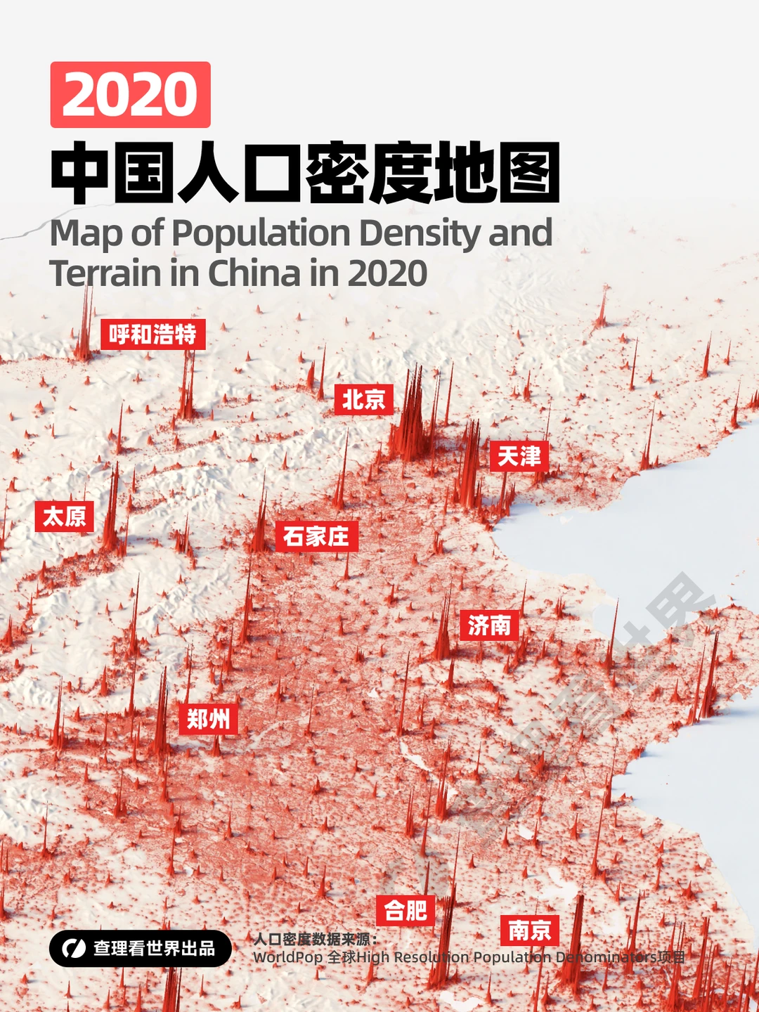 中国人口分布呈现出显著的不均衡态势。从整体来看,东部人口密集,西部人口稀疏。以黑河 — 腾冲一线为界,此线以东地区土地占全国的 42.9% ,却居住着全国总人口的 94.4%(1982 年数据,如今这种分布格局依然显著) 。 在地形上,中国地势西高东低,呈阶梯状分布。西部多高山、高原,像青藏高原、帕米尔高原等,地势起伏大,海拔高,气候条件较为恶劣,交通建设难度大,这些因素使得人类居住和大规模经济活动受限,人口分布相对稀少 。而东部地区主要是平原和丘陵,比如东北平原、华北平原、长江中下游平原等,地势平坦,土壤肥沃,水源充足,气候适宜,既有利于农业生产,也便于交通设施建设和城市发展,吸引了大量人口聚集,人口分布十分密集。 所以,中国的地形特点深刻影响着人口分布格局,地势平坦、自然条件优越的地区人口密集,而地形复杂、自然条件恶劣的地区人口稀疏。 ★原创地图内容谢绝转载★ 地图 地理 数据可视化 人口密度